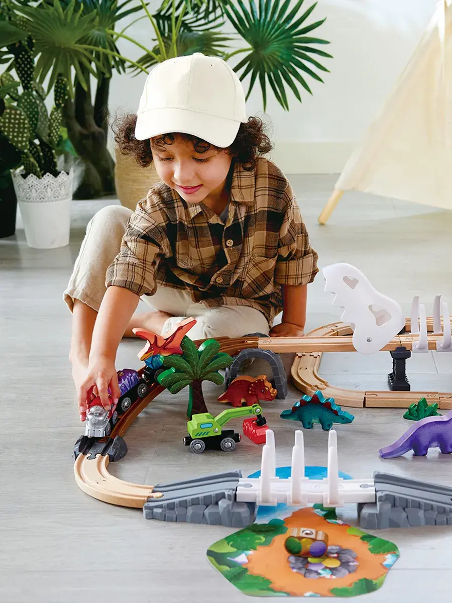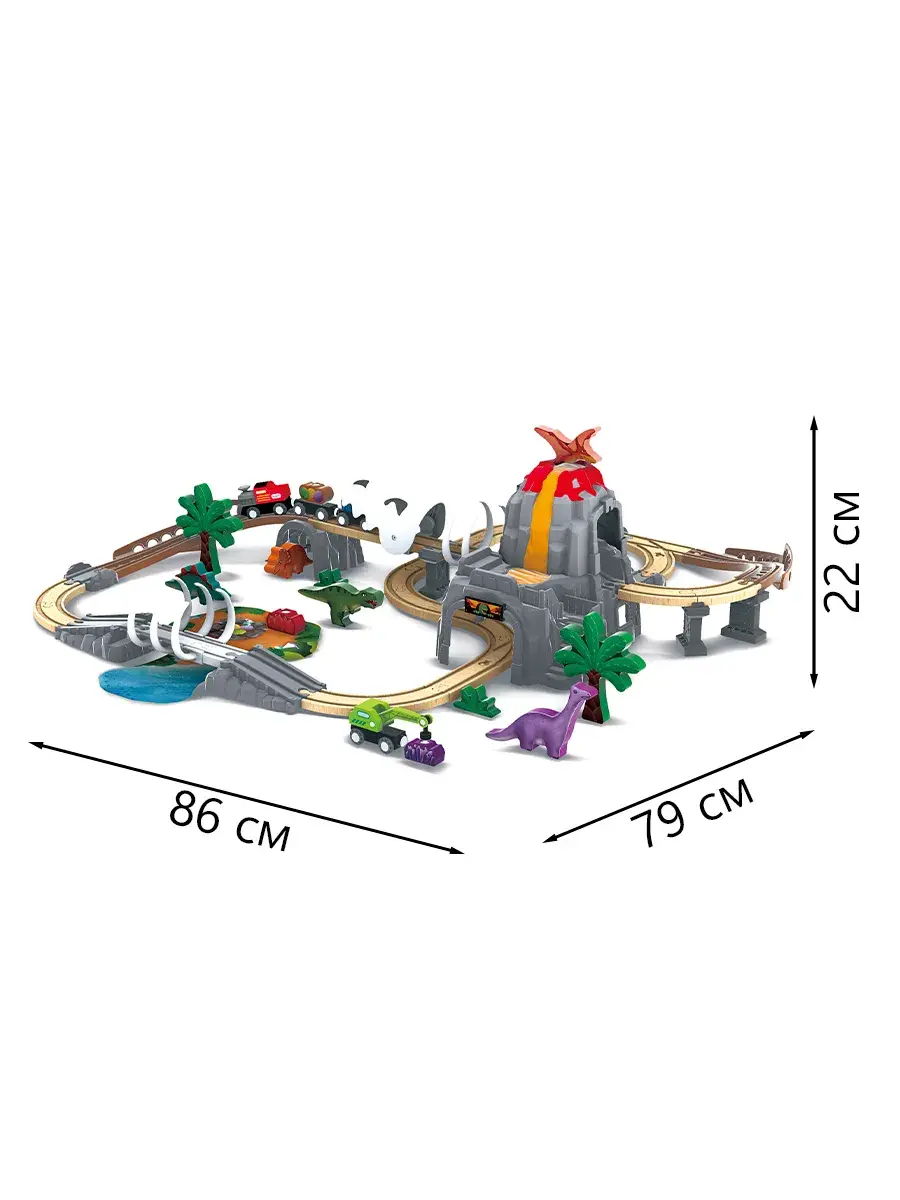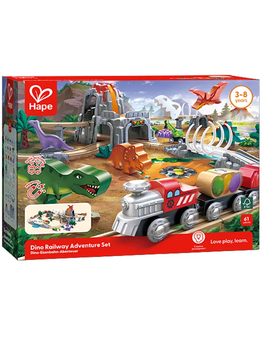 Замечательная игрушка от торговой марки Hape надолго увлечёт маленького любителя дорожных приключений. Дополнительные детали, такие как: деревья, фигурки динозавров, элементы ландшафта помогут ребёнку погрузиться в мир юрского периода. Вагоны паровоза легко соединяются друг с другом при помощи магнита и без труда входят в любой поворот.