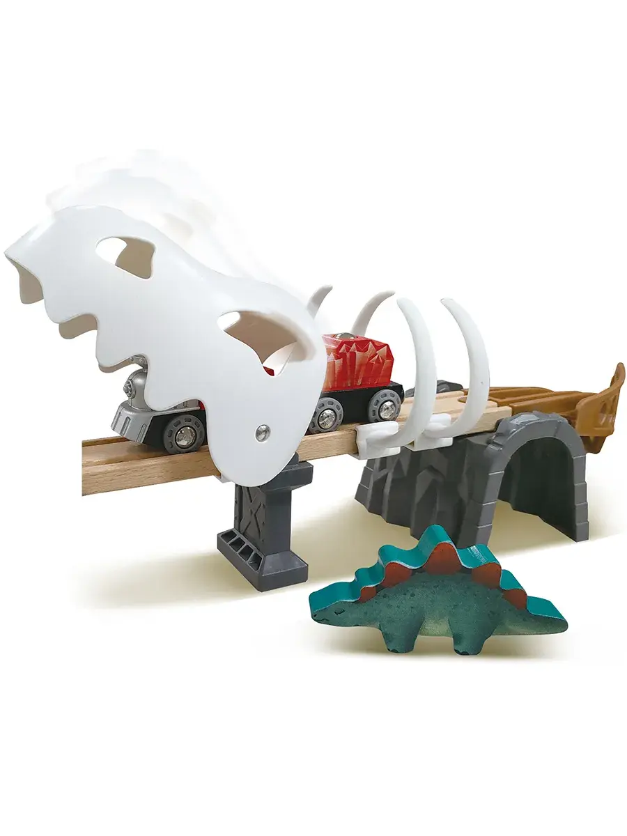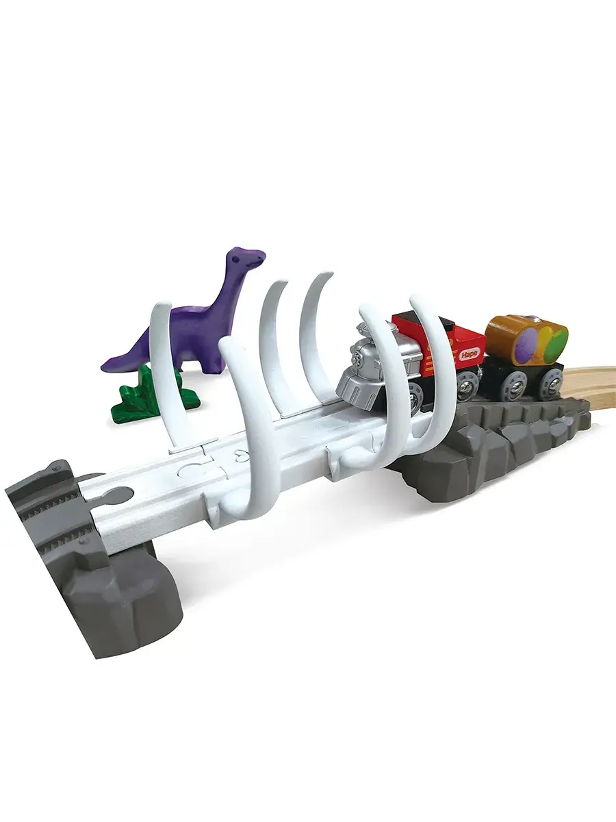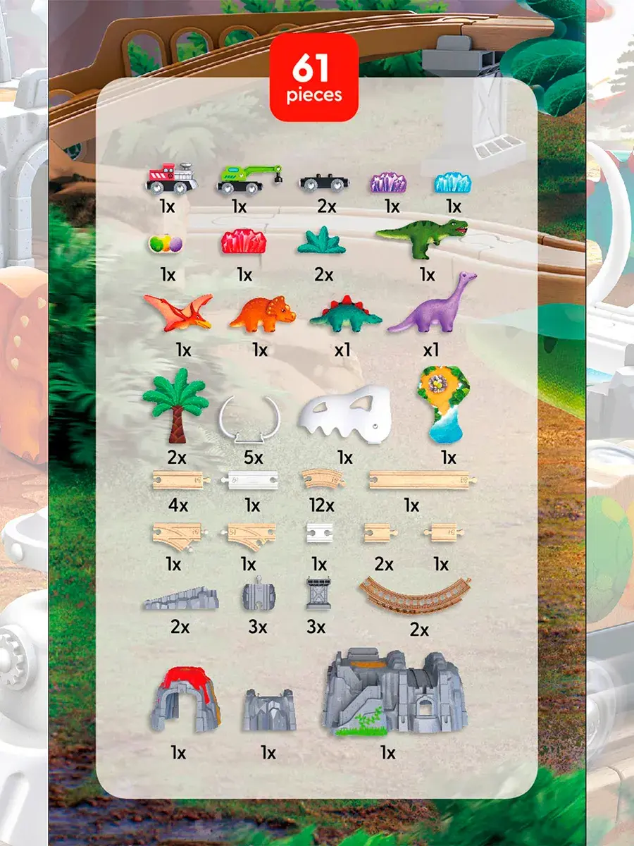 Замечательная игрушка от торговой марки Hape надолго увлечёт маленького любителя дорожных приключений. Дополнительные детали, такие как: деревья, фигурки динозавров, элементы ландшафта помогут ребёнку погрузиться в мир юрского периода. Вагоны паровоза легко соединяются друг с другом при помощи магнита и без труда входят в любой поворот.