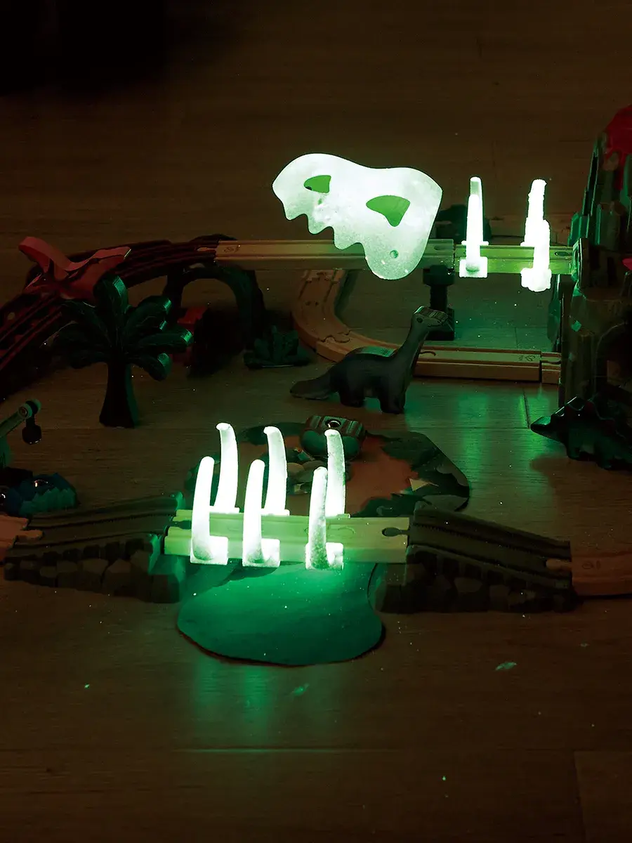 • Яркий дизайн и разноцветные детали помогают детям узнавать и запоминать цвета, предметы и разновидности динозавров.