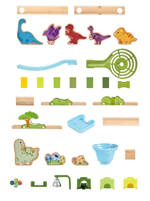 Деревянный конструктор Приключения Динозавров с эффектом Домино и марбл-шариками предлагает часы творческого веселья, открывая безграничные возможности во время игры. Дети получат удовольствие от сборки и подготовки к самой гонке. Конструктор идеально подходит для обучения концепциям науки, технологии, инженерии, искусства и математики.