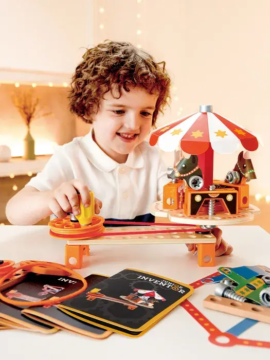 Благодаря конструктору "Фантазия" Карусель начинающие строители изучат принципы науки, техники и физики в игровой форме.