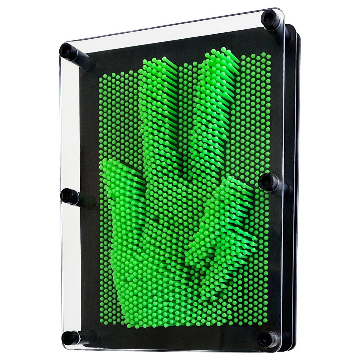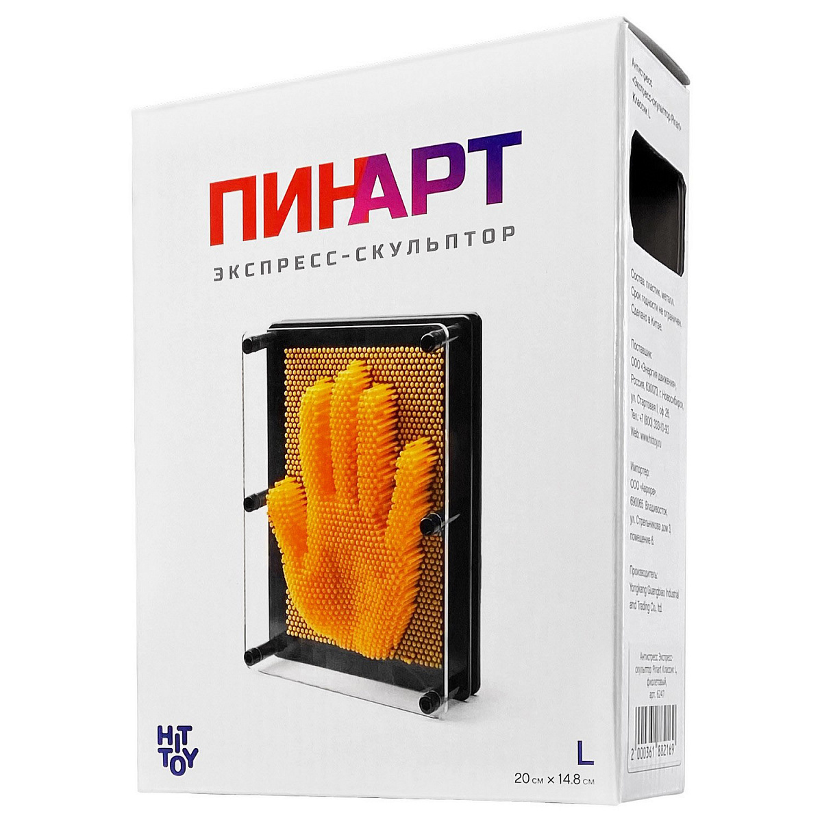 Осуществить мечту и хотя бы на один вечер стать скульптором или архитектором поможет развивающая игрушка Pinart, или как ее называют по-другому, экспресс-скульптор. Благодаря уникальной технологии экспресс-скульптора на его поверхности можно создать любой рисунок или даже сделать слепок рук или лица. Пинарт представляет собой пластину с большим количеством пластиковых стержней, при воздействии на которые получаются объемные фигуры. Чтобы создать слепок руки, держите пинарт в горизонтальном положении, надавите пальцами на стержни и переверните игрушку вертикально – так у вас появится объемный узор. Чтобы сделать новую фигуру, еще раз поверните пинарт горизонтально, тогда стержни упадут.
