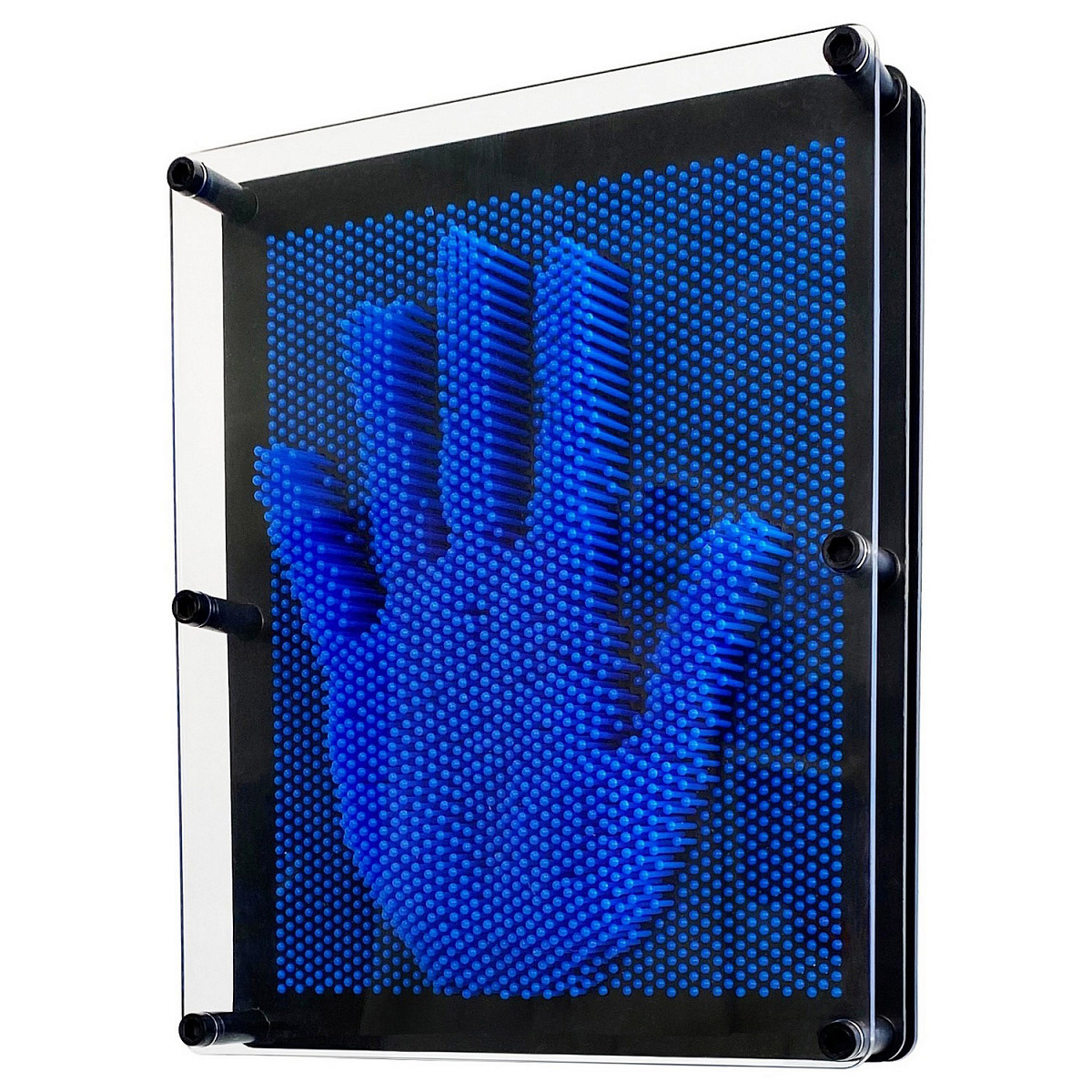 Осуществить мечту и хотя бы на один вечер стать скульптором или архитектором поможет развивающая игрушка Pinart, или как ее называют по-другому, экспресс-скульптор. Благодаря уникальной технологии экспресс-скульптора на его поверхности можно создать любой рисунок или даже сделать слепок рук или лица. Пинарт представляет собой пластину с большим количеством пластиковых стержней, при воздействии на которые получаются объемные фигуры. Чтобы создать слепок руки, держите пинарт в горизонтальном положении, надавите пальцами на стержни и переверните игрушку вертикально – так у вас появится объемный узор. Чтобы сделать новую фигуру, еще раз поверните пинарт горизонтально, тогда стержни упадут.