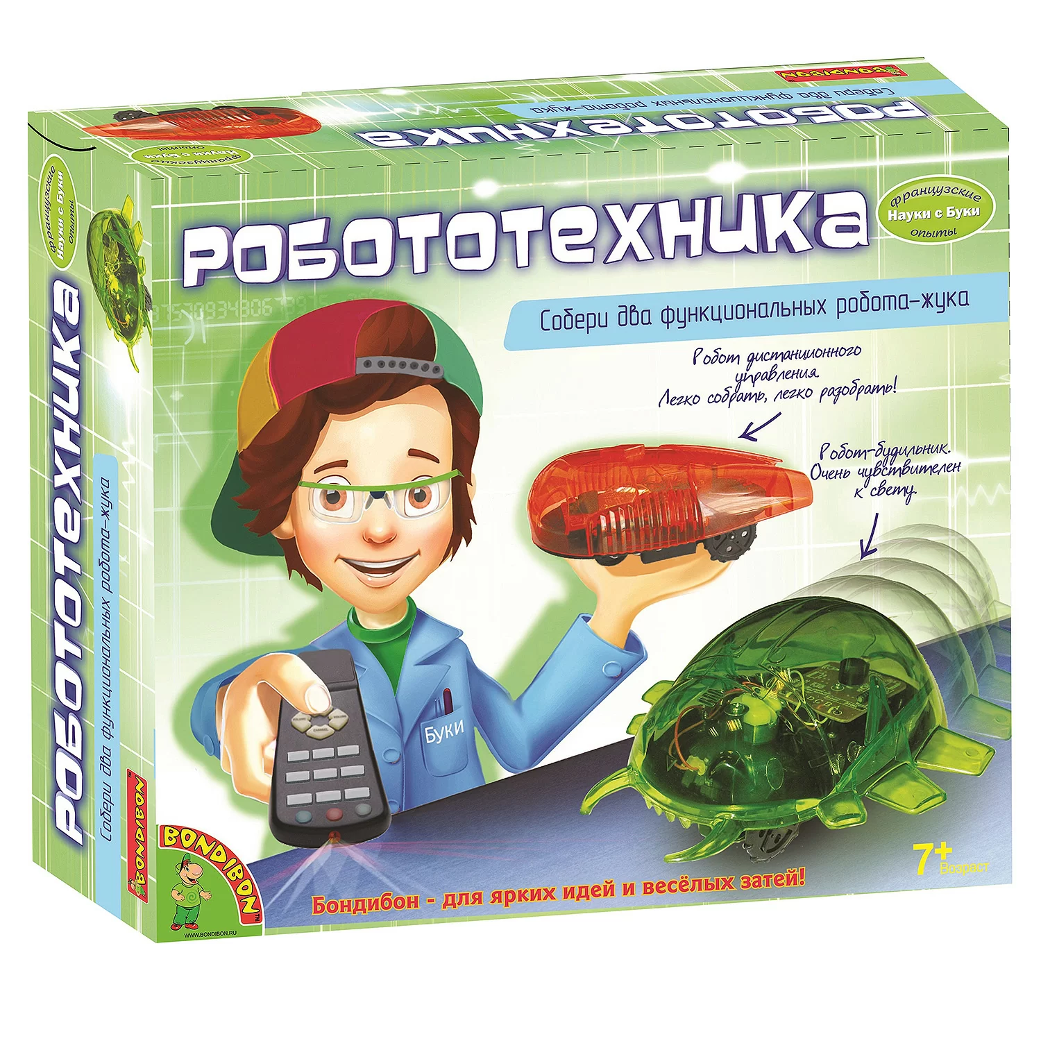 Невозможное — возможно! Особенно с набором для опытов Робототехника от Bondibon. Юный инженер сможет выполнить сразу 2 эксперимента и подчинить жуков, заставляя их двигаться с помощью пульта или фонарика. Супер жуки удивят любого малыша! Красный управляется с помощью пульта, зеленый приходит в движение от света и может служить оригинальным будильником! Собрать роботов и узнать больше о том, как работают внутренние механизмы можно в подробной инструкции с картинками. Там же можно посмотреть все серии наборов для опытов Науки с Буки. Французские опыты с механизмами всегда вызывают большой восторг! Маленький изобретатель познаёт азы теоретической механики, электроники, инженерии. У детей развивается логическое мышление, концентрация внимания, зрительное восприятие. Роботы жуки выполнены с гарантией качества Бондибон. Все детали приятно держать в руках, модули можно собирать и разбирать много раз.