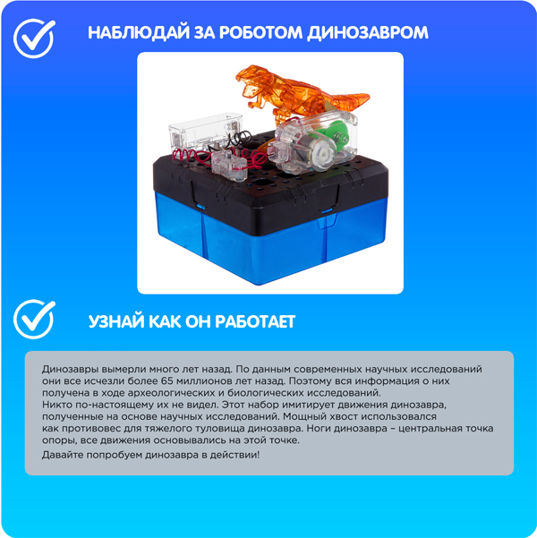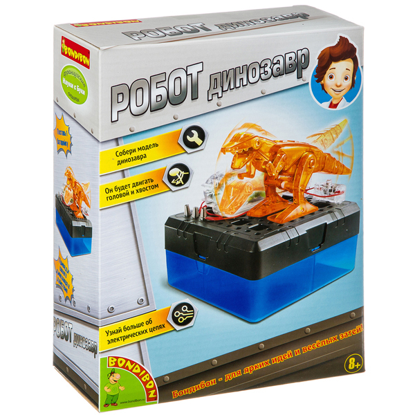 Собери набор для опытов Робот динозавр от Bondibon, и смотри, как он имитирует движения настоящего динозавра, полученные на основе научных исследований.