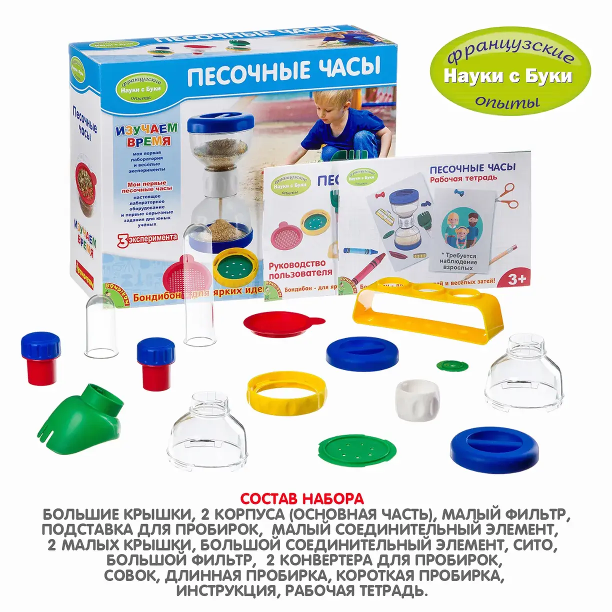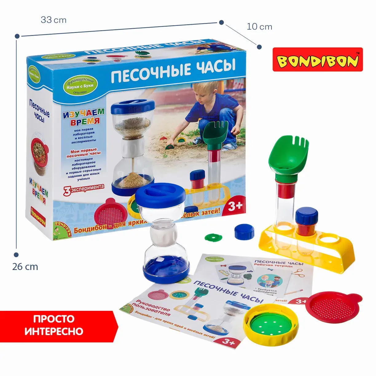 Превратите обычную песочницу в настоящую научную лабораторию! Набор для опытов ПЕСОЧНЫЕ ЧАСЫ 3 ЭКСПЕРИМЕНТА серии Французские опыты Науки с Буки от Bondibon содержит крупные красочные детали и станет отличным подарком для самых маленьких исследователей. Ваш ребенок сможет самостоятельно собрать песочные часы, составить свой распорядок дня, понять, какое ежедневное занятие занимает больше времени, а какое меньше. Игры с данным набором помогут сформировать первые представления о времени, развить мелкую моторику и улучшить когнитивные навыки. Набор для опытов ПЕСОЧНЫЕ ЧАСЫ 3 ЭКСПЕРИМЕНТА серии Французские опыты Науки с Буки от Бондибон изготовлен из качественных безопасных материалов, и подходит для использования как дома, так и в детском саду.