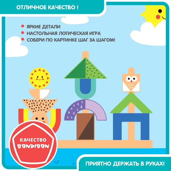 Игра головоломка из дерева «СВЕТ И ТЕНЬ БондиЛогика Bondibon. Сумеет ли луна спрятать от Вас то, что не успело показать солнце? Ответ на этот вопрос Вы получите, только пройдя все задания этой лукавой игры! Малыши от 3 лет не смогут оторваться от красочной игры из дерева СВЕТ И ТЕНЬ из серии БондиЛогика от Bondibon. Увлекательная головоломка для маленьких мальчиков и девочек. Выберите одно из 48 заданий в книжке из набора. Попробуйте повторить комбинацию из фигур на изображении, насаживая деревянные фигуры из подставки на колышки. Сравнивайте результаты ДЕНЬ и НОЧЬ. В игровой форме развивайте у ребенка память и речевые функции – навыки, которые пригодится ребенку на протяжении всей жизни с самого детства. Можно вручить маленькому человеку учебник логики, но играя, дети узнают мир – и чем умнее будут их развлечения, тем лучше они подготовятся большой жизни.
