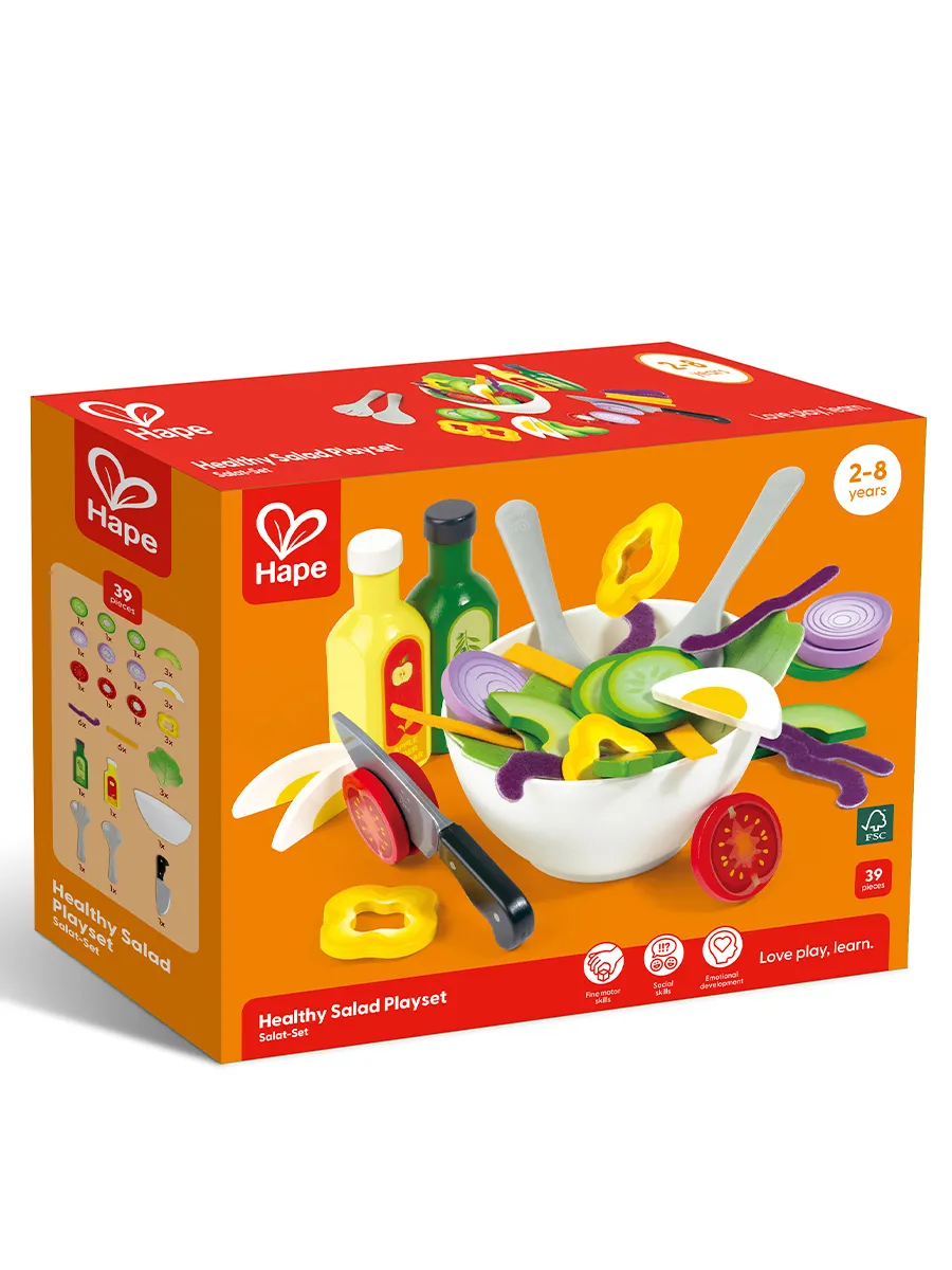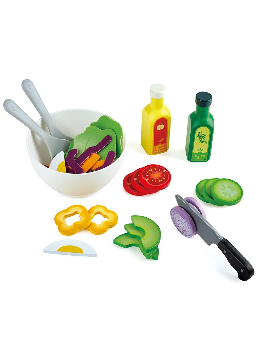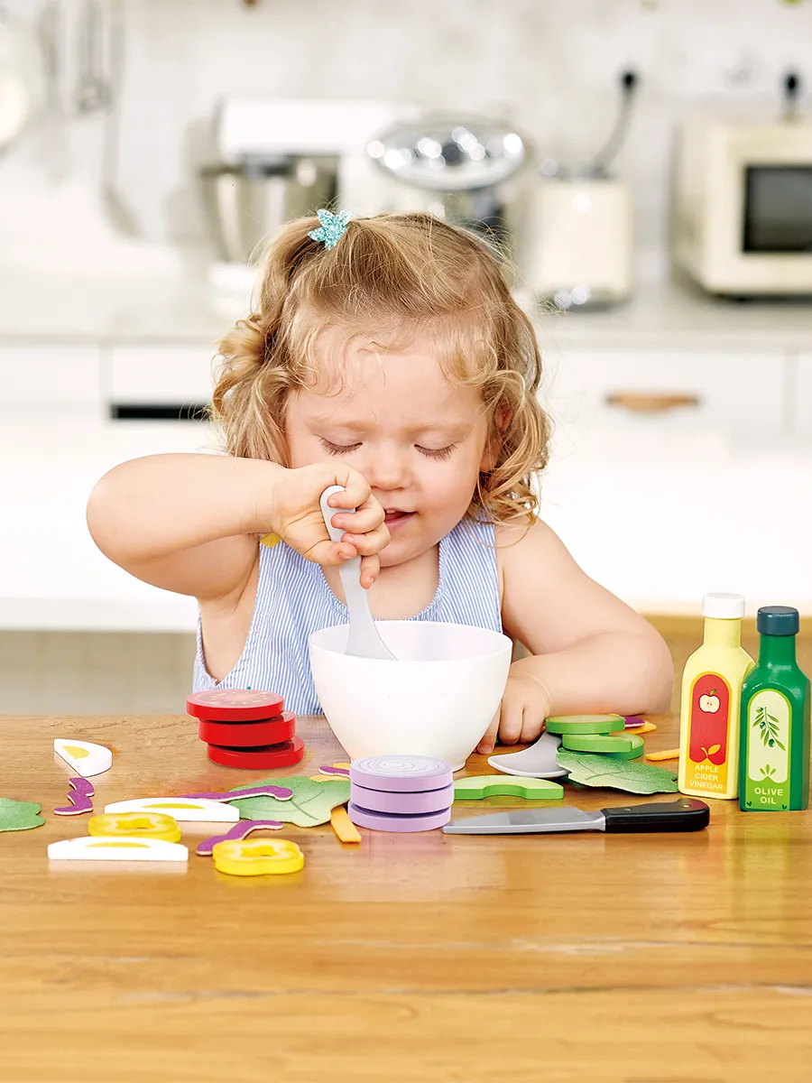 Этот восхитительный игровой набор помогает детям познакомиться с салатом и овощами и вдохновляет их на формирование привычек здорового питания. Он наполнен смесью красочных ингредиентов для салата, которые можно нарезать, чтобы юные повара могли притвориться, что играют! Поощряйте любознательность и дайте своим детям возможность развивать воображение, развивать свои языковые и социальные навыки, играя с этим реалистичным набором салатов самого высокого качества! Объедините этот набор с другими наборами еды, чтобы устроить веселый праздник. Этот набор игрушечных салатов добавляет реалистичности игре! Он отлично подходит для развития мелкой моторики и зрительно-моторной координации путем нарезки и сортировки ингредиентов, а также их смешивания. Самоклеящиеся выступы на овощах издают хруст при нарезке, а ингредиенты имеют закругленные края, удобные для маленьких пальчиков.