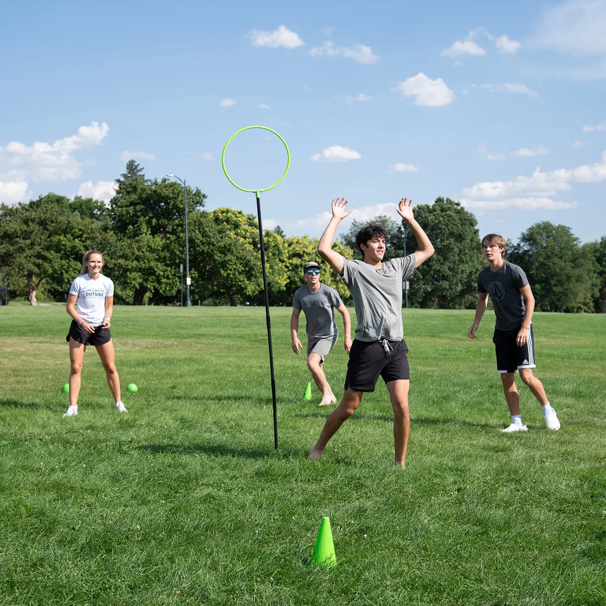 Как любители игр на заднем дворе, так и новички могут быстро освоить эту игру. Как и в баскетболе, команды чередуют владение мячом и пытаются перебросить мяч через кольцо, чтобы забить. Очень похоже на Квиддич для магглов!