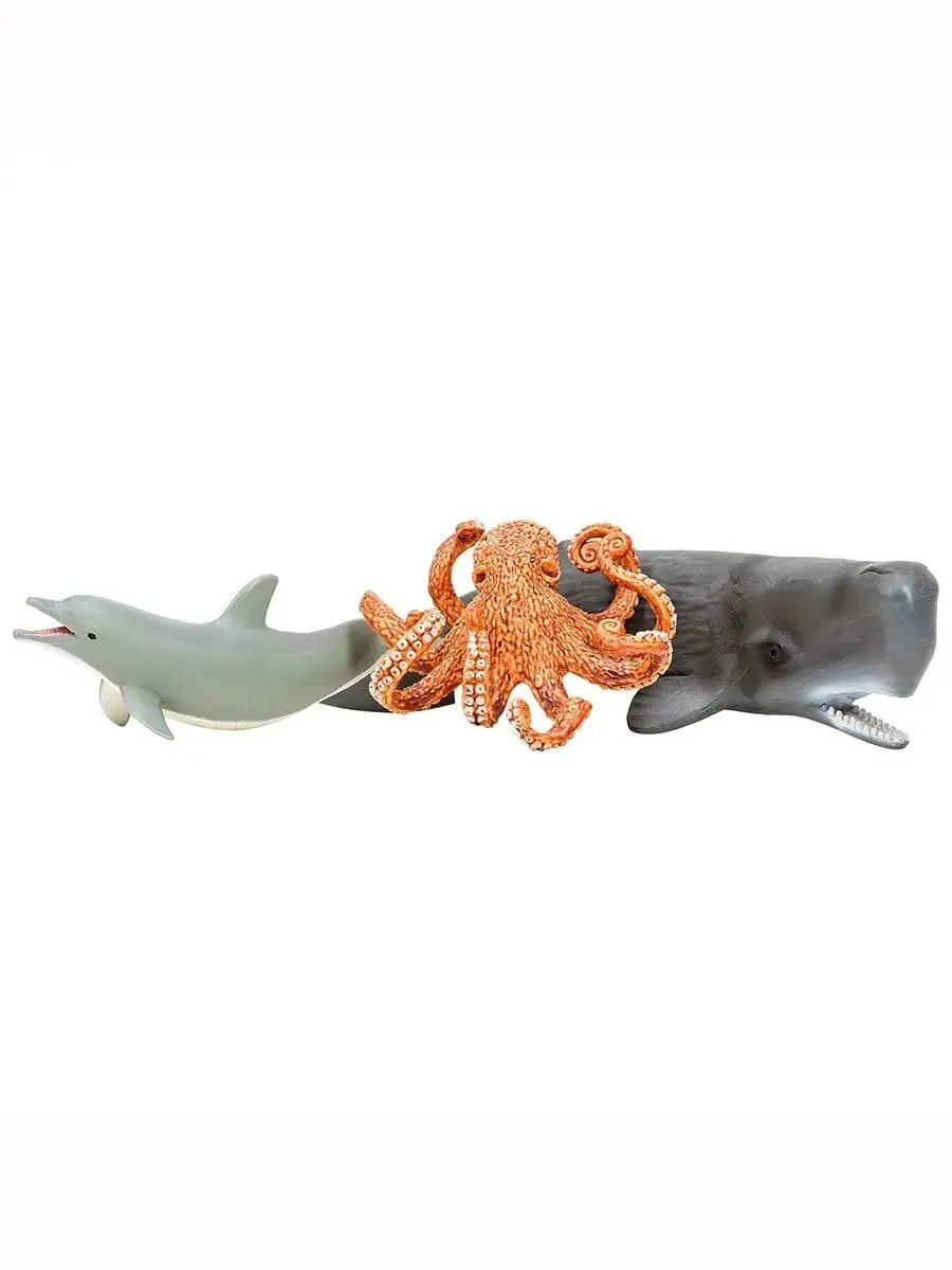 Фигурки кашалот, морская черепаха, дельфин, осьминог, морской слон являются уменьшенными копиями реальных животных. Фигурки выполнены из высококачественного литого цветного пластика. Игрушка не боится механического воздействия, и надолго сохраняет первоначальный внешний вид. Мелкие детали фигурок прорисовываются вручную безопасными и устойчивыми к внешнему воздействию красителями. Данная технология позволяет получить максимальное сходство с животным.