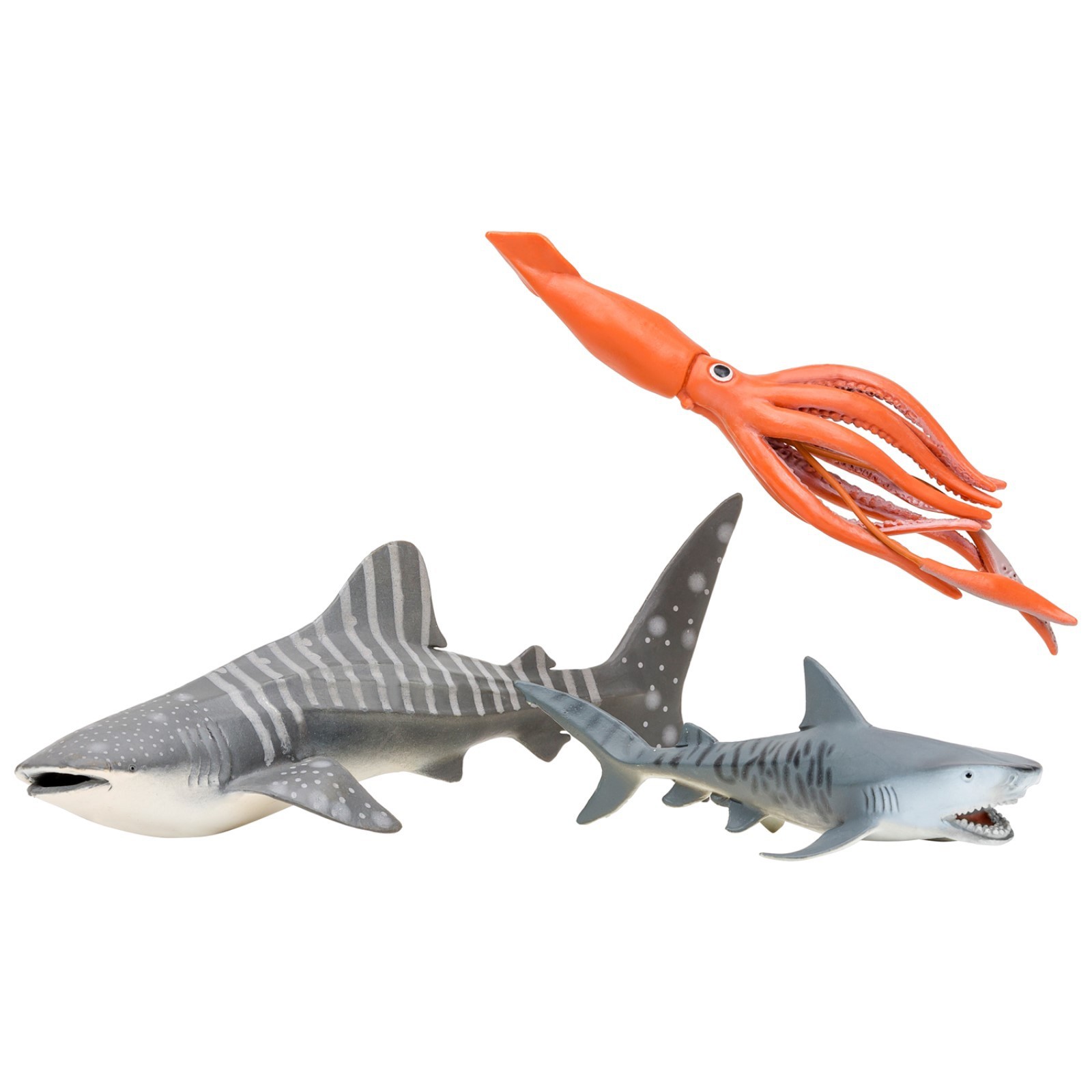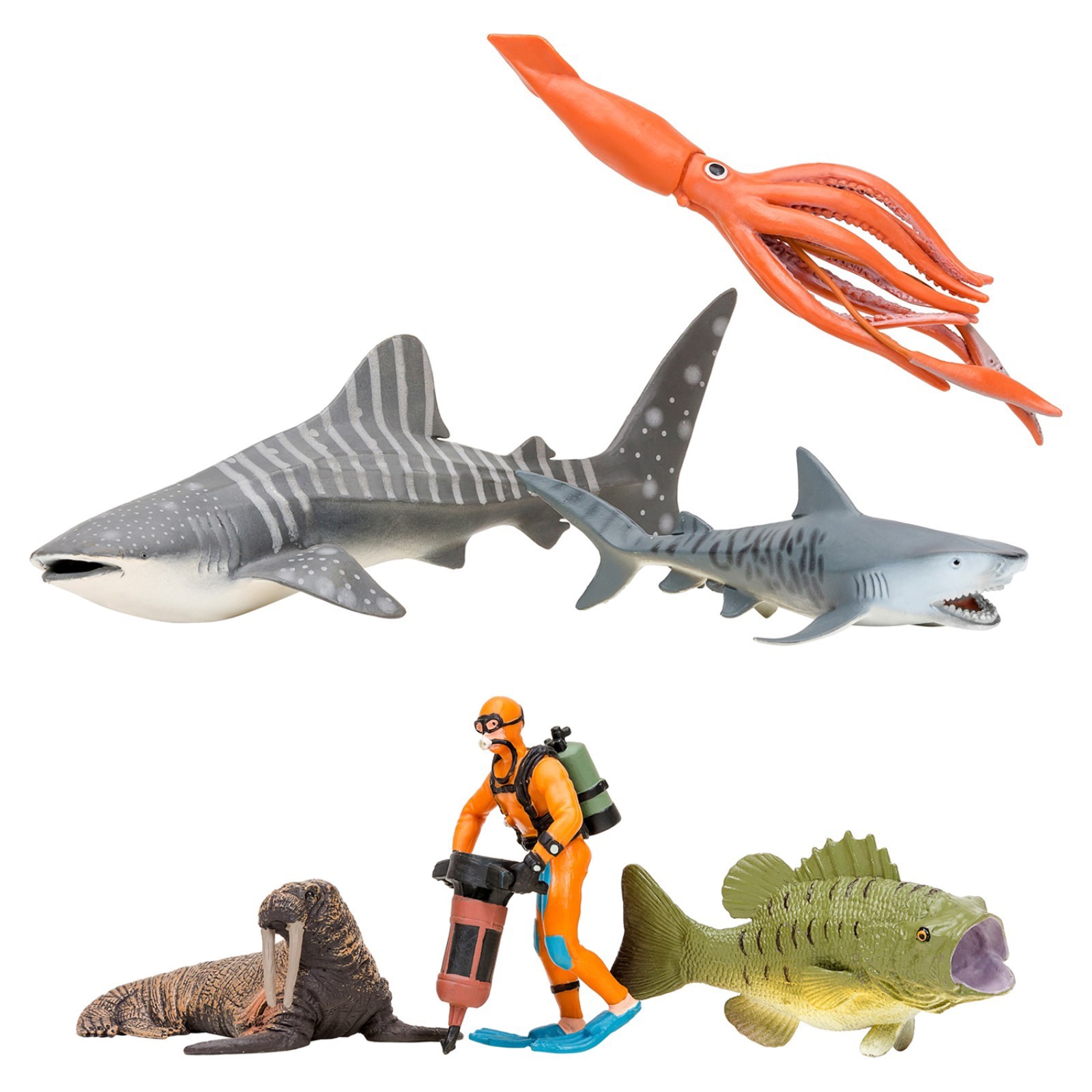 Китовая акула (23,5х9х7,5 см) Акула (15х5х6 см) Морж (9,5х8х5 см) Кальмар (23х5х3 см) Окунь (11,5х3,5х6 см) Дайвер (8х3х3 см)