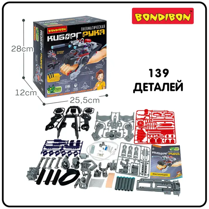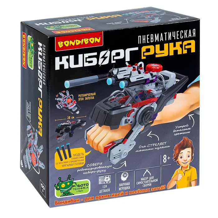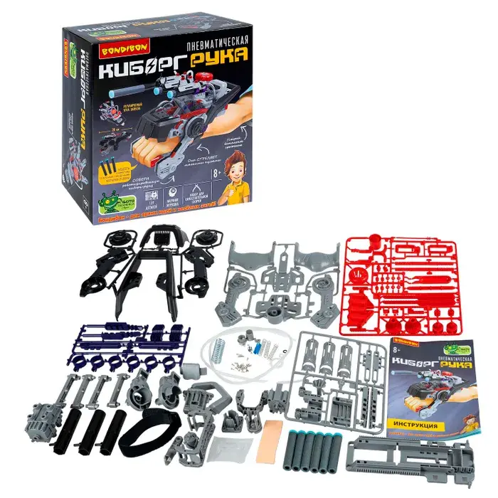 Набор робототехники серии Науки с Буки от Bondibon Киборг – рука — это уникальный обучающий набор для самостоятельной сборки , который открывает детям захватывающий мир роботостроения, инженерии и научных опытов и экспериментов.