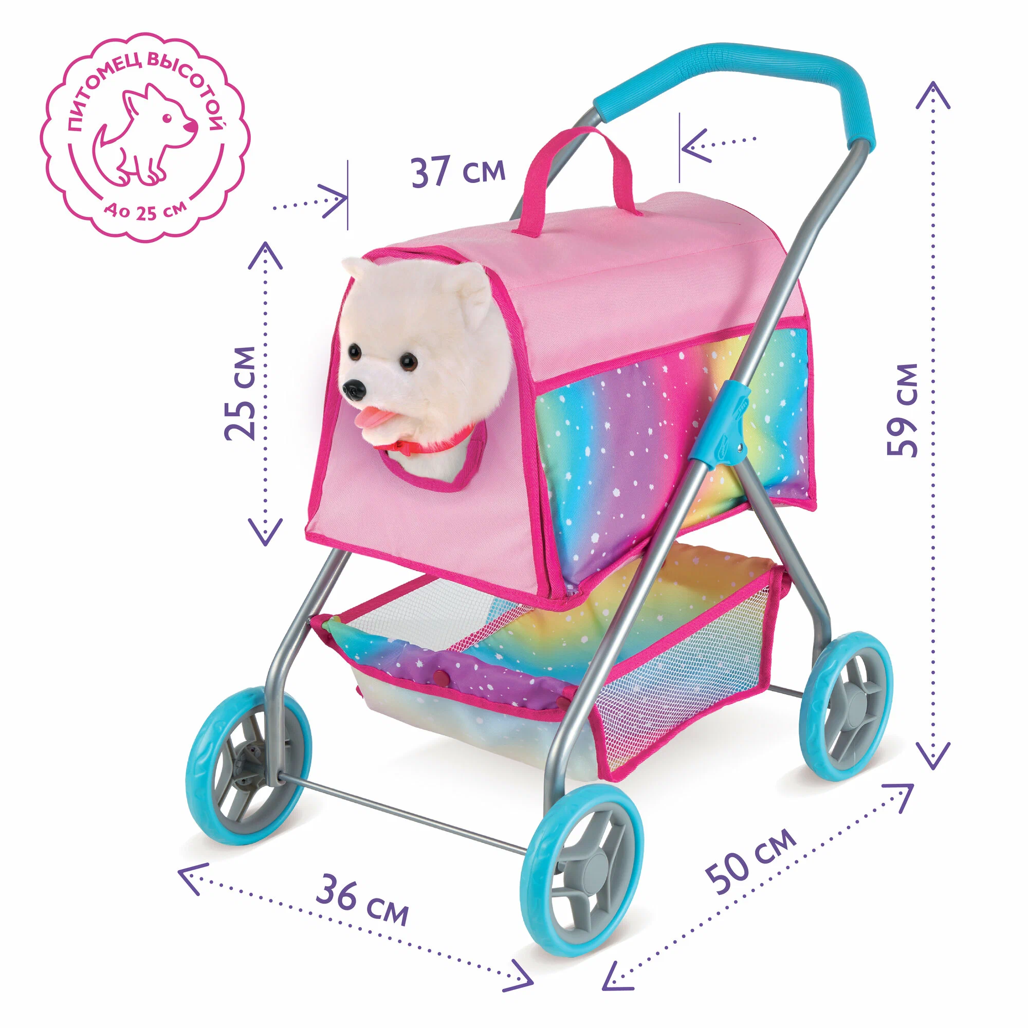 Размер коляски ДхШхВ: 50 х 36 х 59 см.