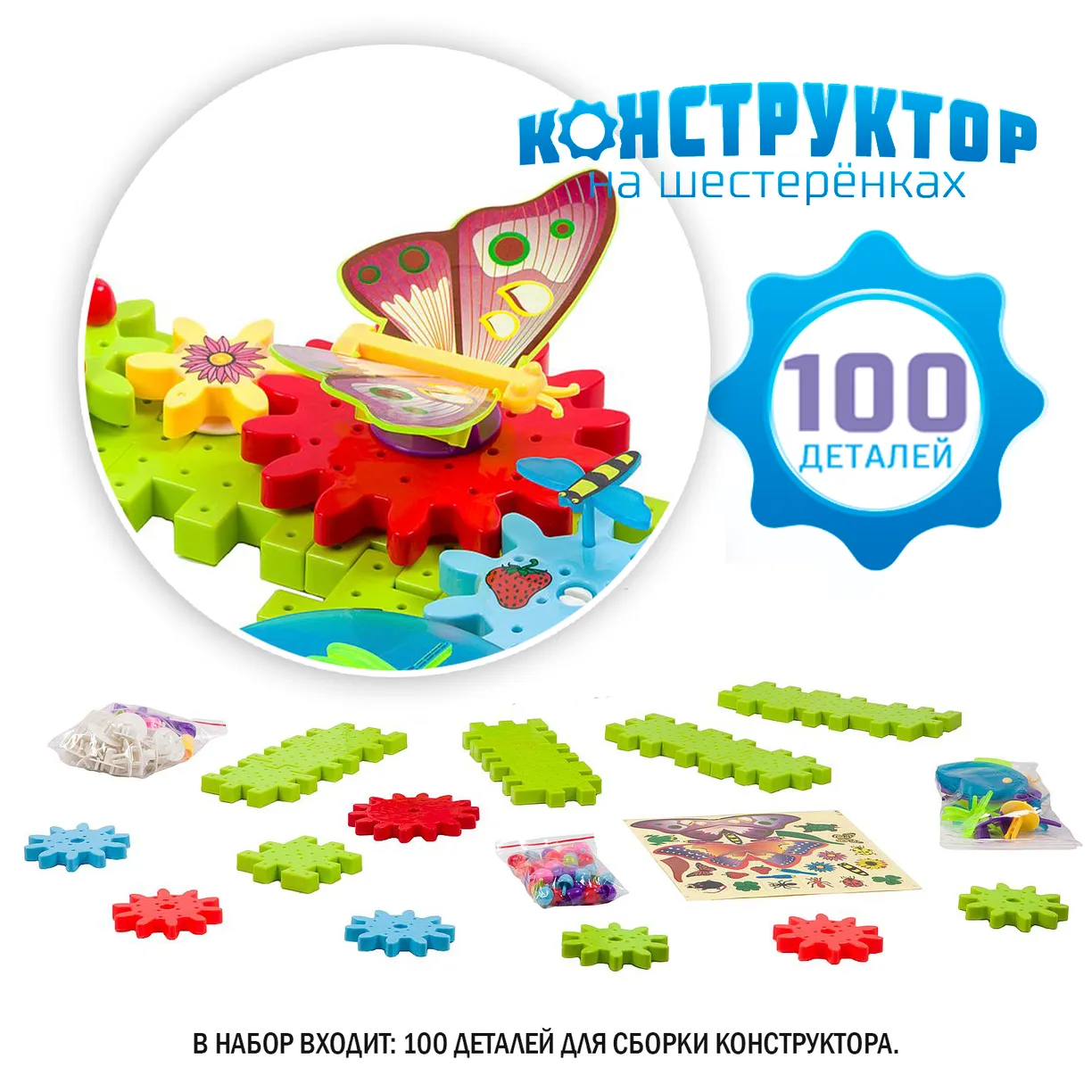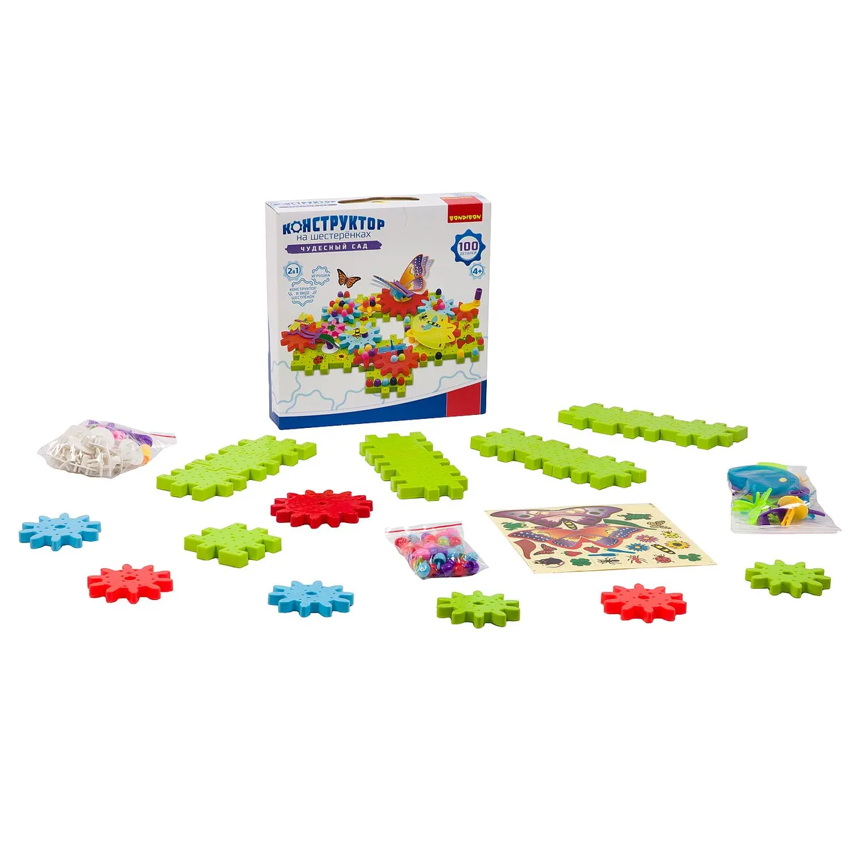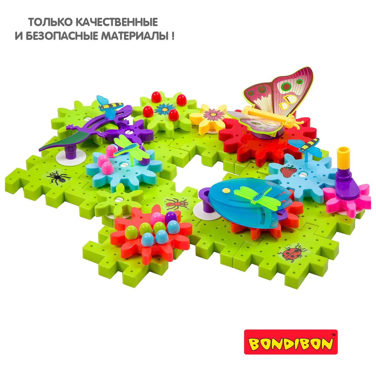 Собери полянку с бабочками и цветами и приведи ее в движение! Пластиковый конструктор на шестеренках ЧУДЕСНЫЙ САД от Bondibon состоит из 100 красочных деталей: блоков-пазлов и шестерней. Ваша задача – собрать такую конструкцию с разными по сложности подвижными механизмами, которая начнет двигаться, если повернуть рукоятку. Вы можете создать волшебный сад по инструкции или придумать что-то уникальное. Данный конструктор познакомит ребенка с первым этапом машиностроения – с понятием зубчатое колесо или шестерня. Игровой конструктор с блок пазлами ЧУДЕСНЫЙ САД от Бондибон станет прекрасным подарком, который надолго увлечет детей и поможет развить творческие способности, абстрактное воображение, логическое мышление, мелкую моторику, интерес к науке - физике и моделированию. Оригинальная игрушка изготовлена из качественных безопасных для маленьких детей материалов. Набор совместим с другими конструкторами данной серии и не требует дополнительных инструментов для сборки.