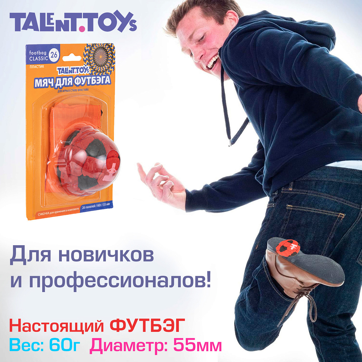 Погрузитесь в мир активных игр с профессиональным футбэгом! Этот мини-мячик идеально подходит для игры на свежем воздухе и в помещении. Выполненный из прочного и легкого материала, он обладает отличными игровыми характеристиками, позволяя наслаждаться каждой секундой игры.