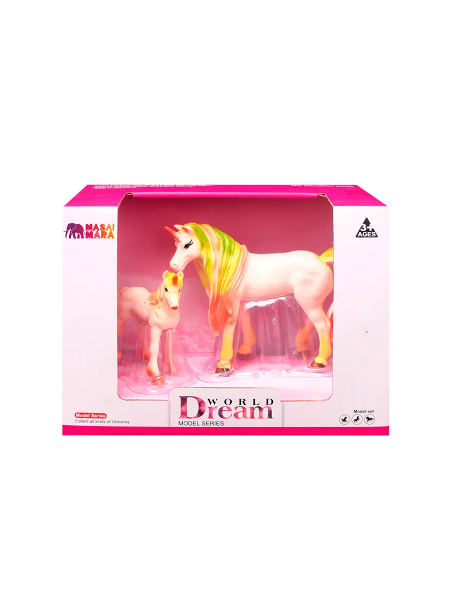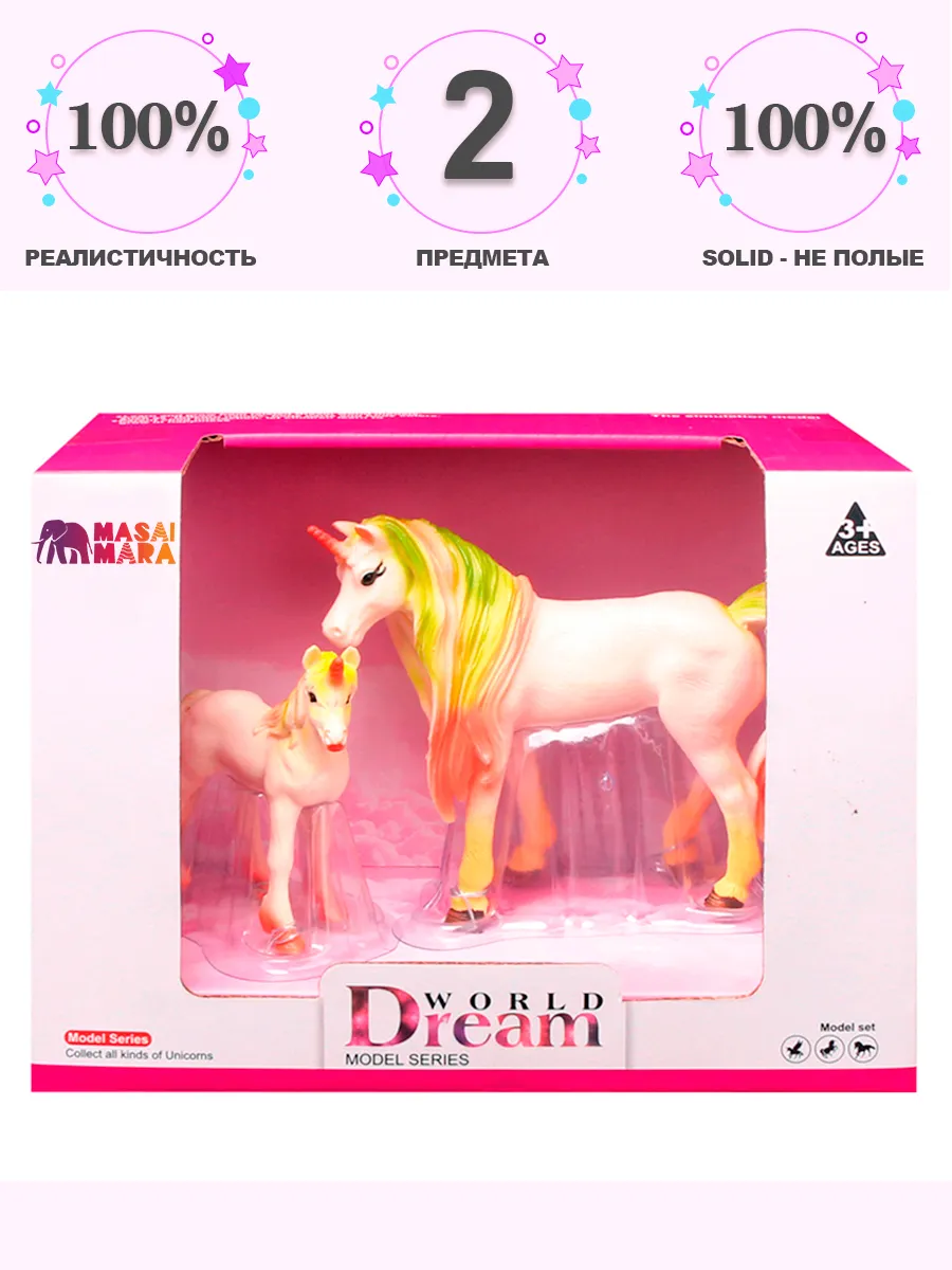 Набор фигурок животных Мир фэнтези Семья белых единорогов с зеленой гривой 2 шт