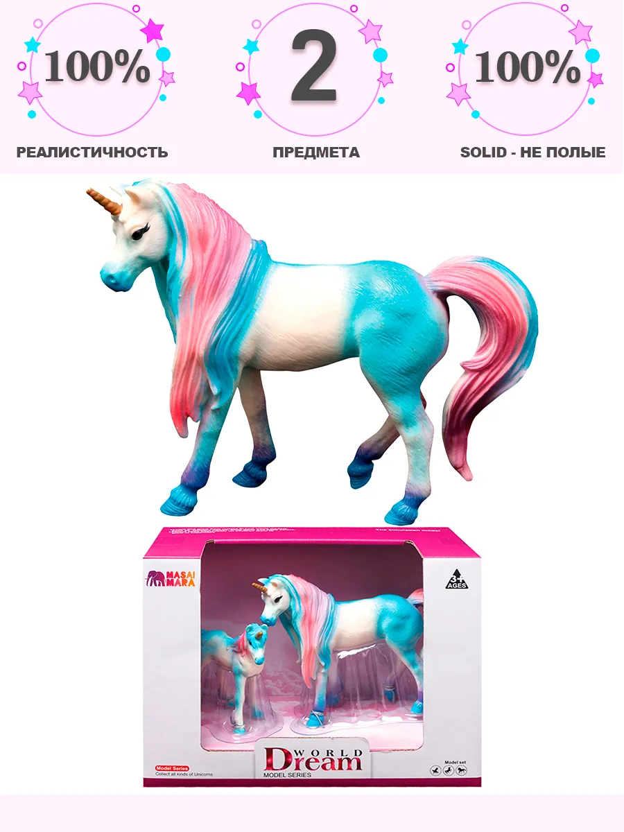 Набор фигурок животных Мир фэнтези Семья голубых единорогов 2 шт