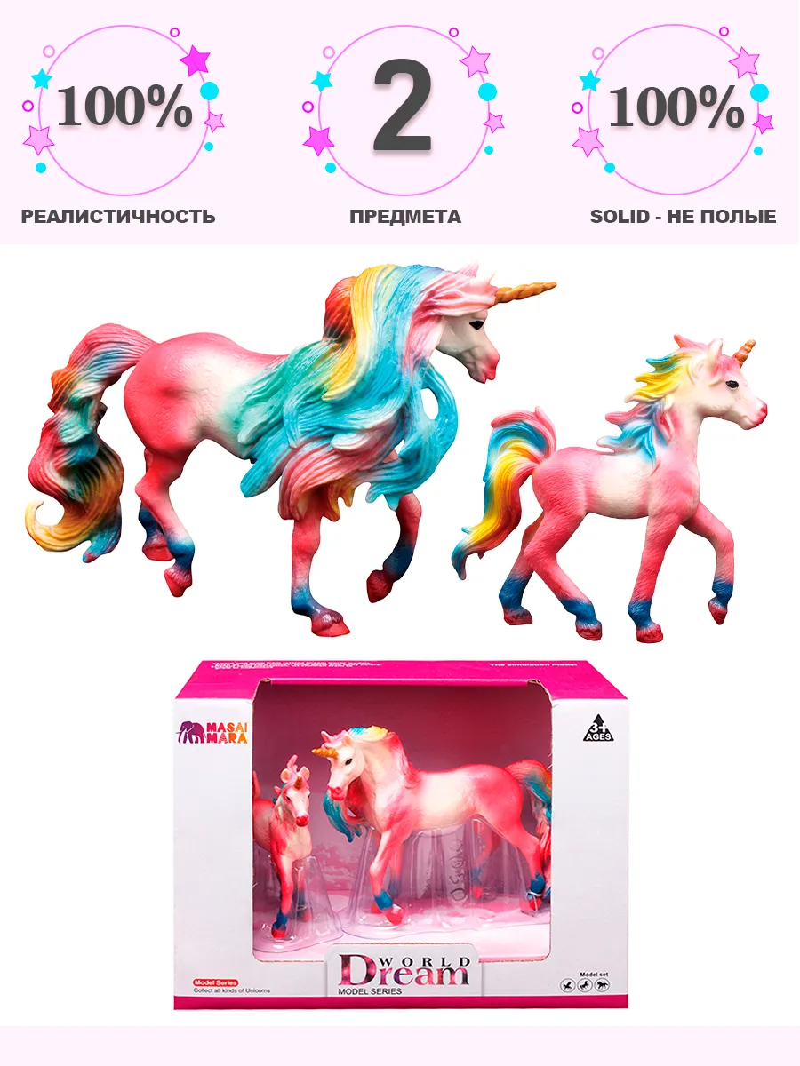 Фигурки единорогов являются уменьшенной копией вымышленных персонажей, с подробной детализацией. • Выполнены из высококачественного литого цветного пластика. • Не боятся механического воздействия, и надолго сохраняют первоначальный внешний вид. • Мелкие детали прорисовываются вручную безопасными и устойчивыми к внешнему воздействию красителями. Технология позволяет получить максимальное сходство с животным. • Набор подходит для увлекательных сюжетных игр, отлично сочетается с другими игрушками этой же серии. • Безопасны для младенцев, не имеют ни вкуса, ни запаха. Краска сохраняет целостность под воздействием детской слюны и зубов. • Игры с фигурками помогают ребенку познакомиться с миром магических животных, развивают воображение и фантазию. • Фигурки единорогов серии Мир фэнтези – прекрасный подарок ребенку.