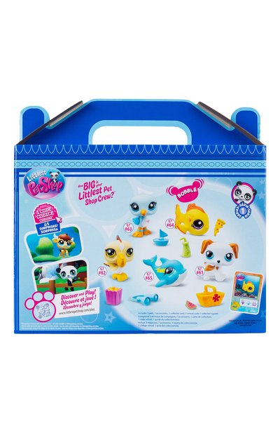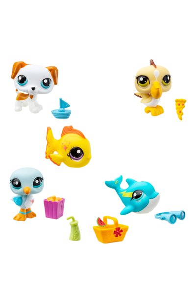 В набор «Пляж» из линейки Littlest Pet Shop включили фигурки щенка, чайки, пеликана, дельфина и рыбки, умеющие качать головами. Игрушки и все аксессуары выполнили из гипоаллергенного пластика без запаха. В комплекте – коллекционная карточка с информацией об одном из питомцев.