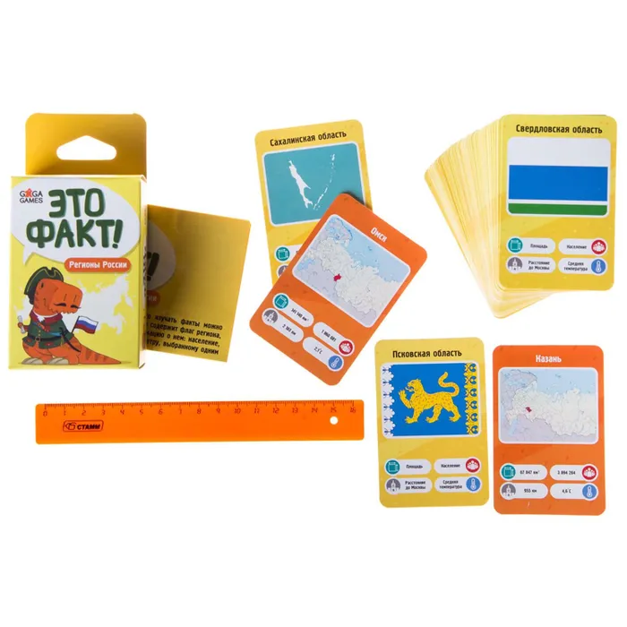 Настольная игра GaGa Games Это факт! Россия – это азартная викторина для всей семьи. Сравните различные регионы друг с другом и узнайте, что больше: Свердловская или Псковская область?