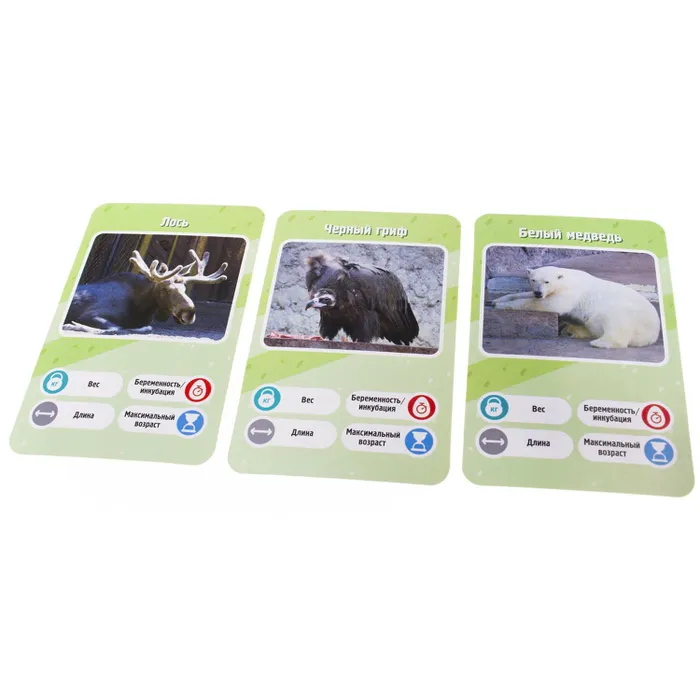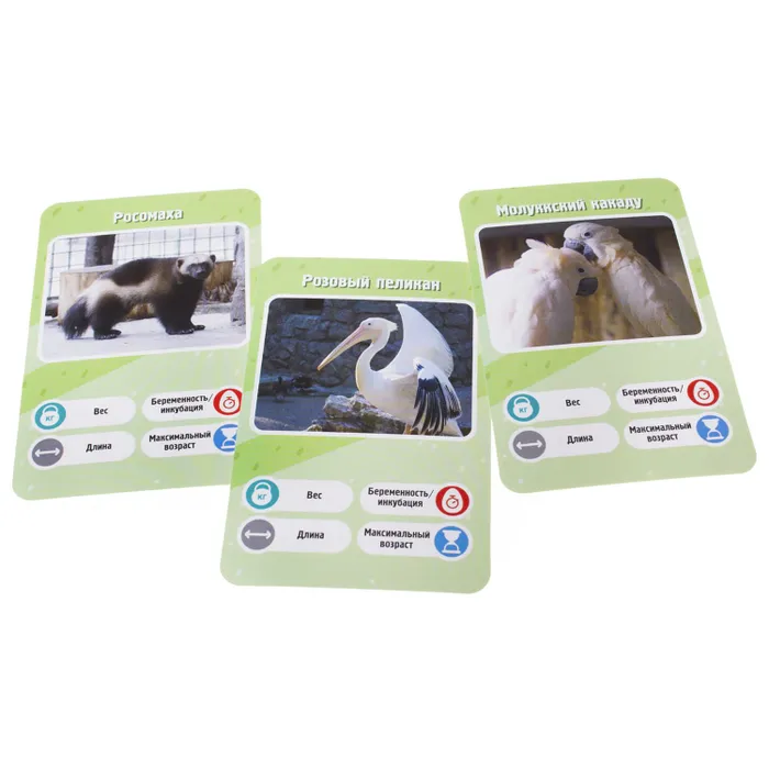 Настольная игра GaGa Games Это факт! Зоопарк – это азартная викторина для всей семьи. Сравните животных по разным показателем и узнайте, кто живёт дольше: полярная сова или черный макак?