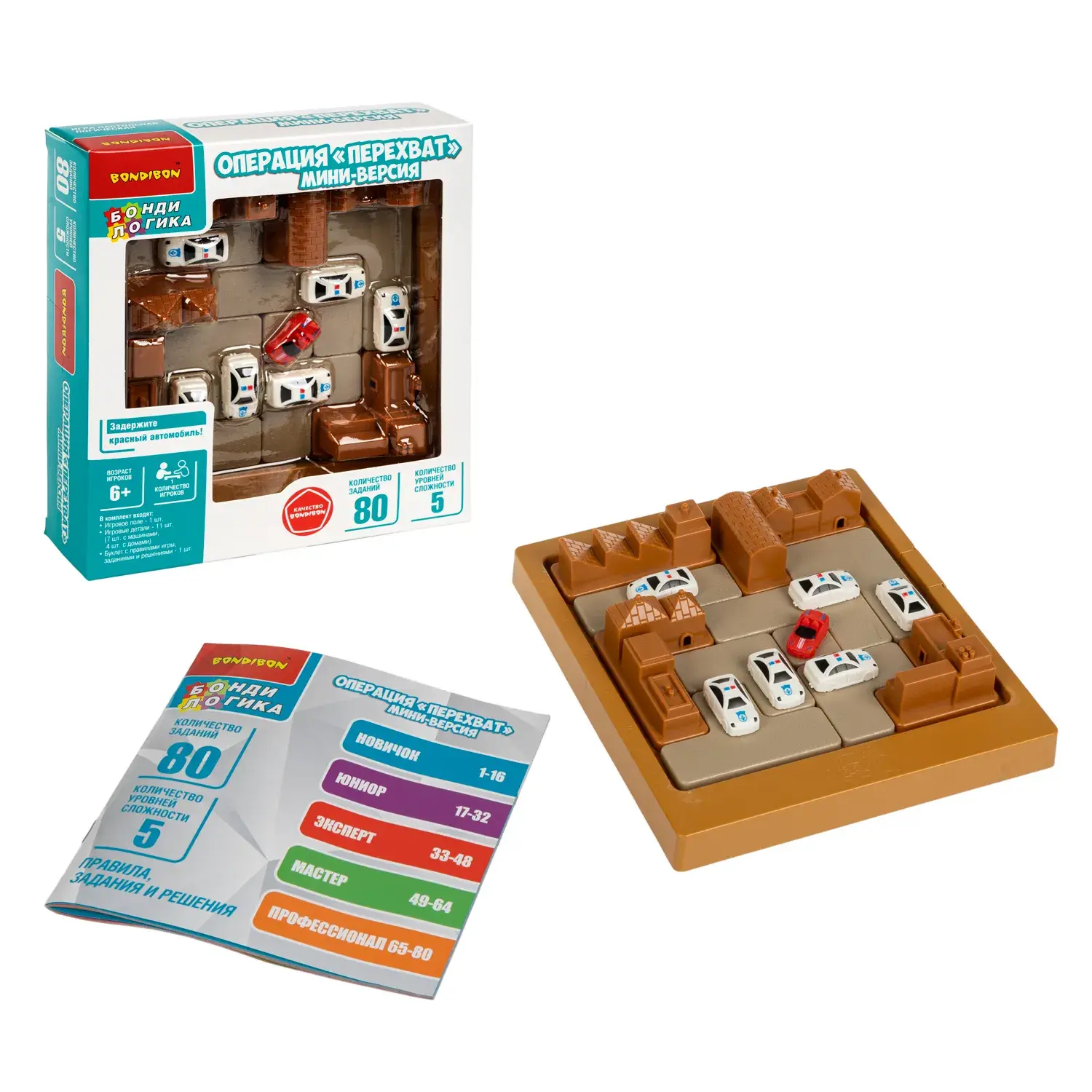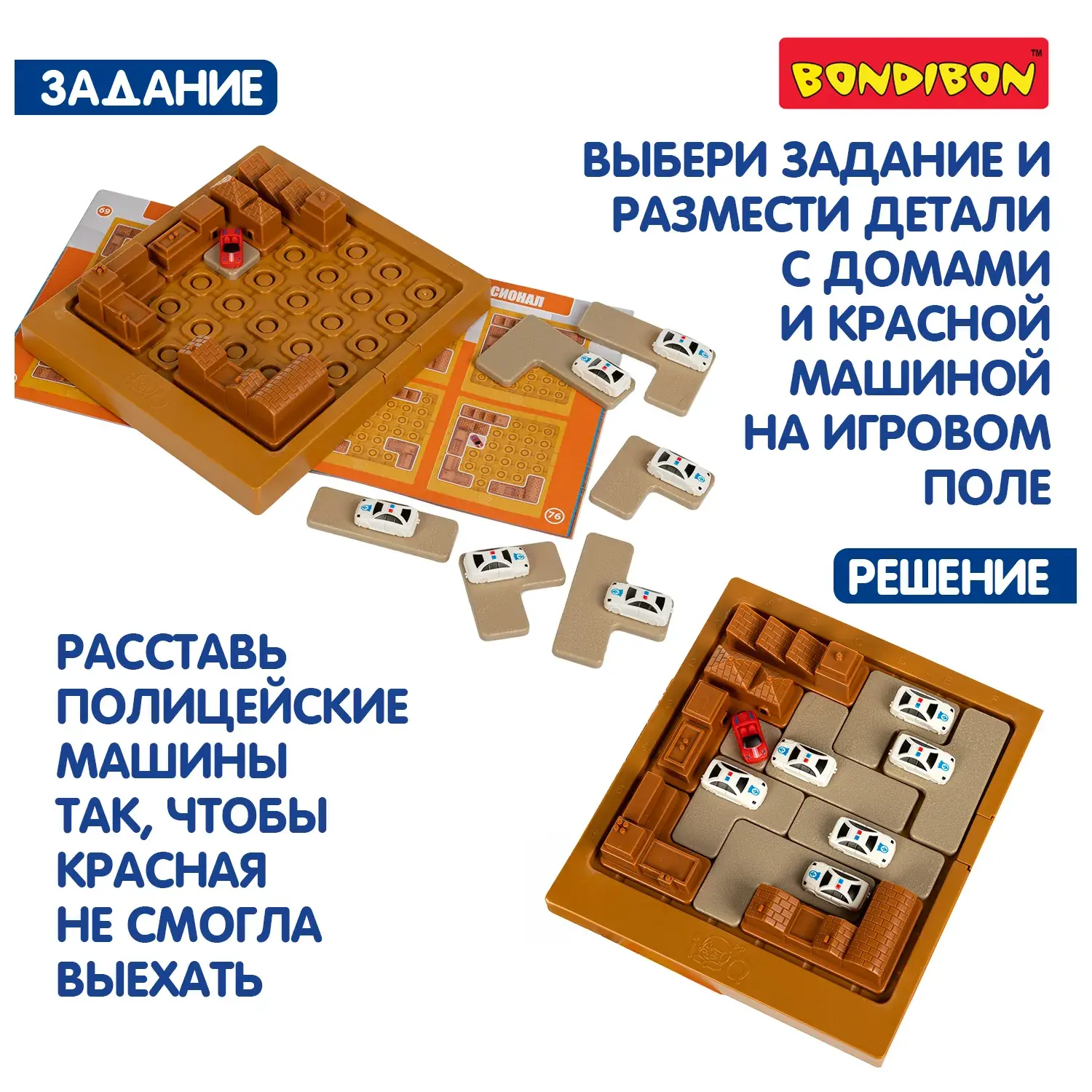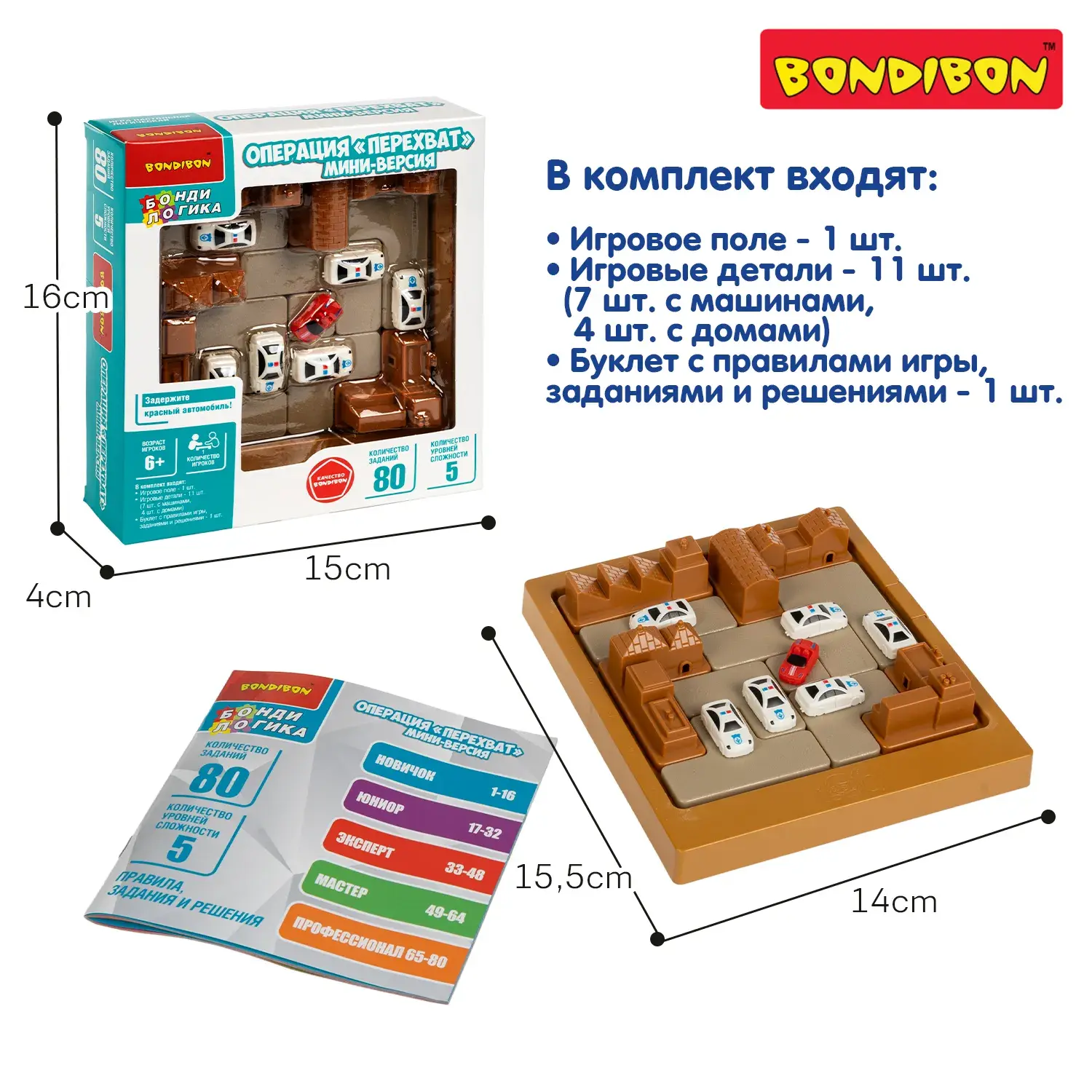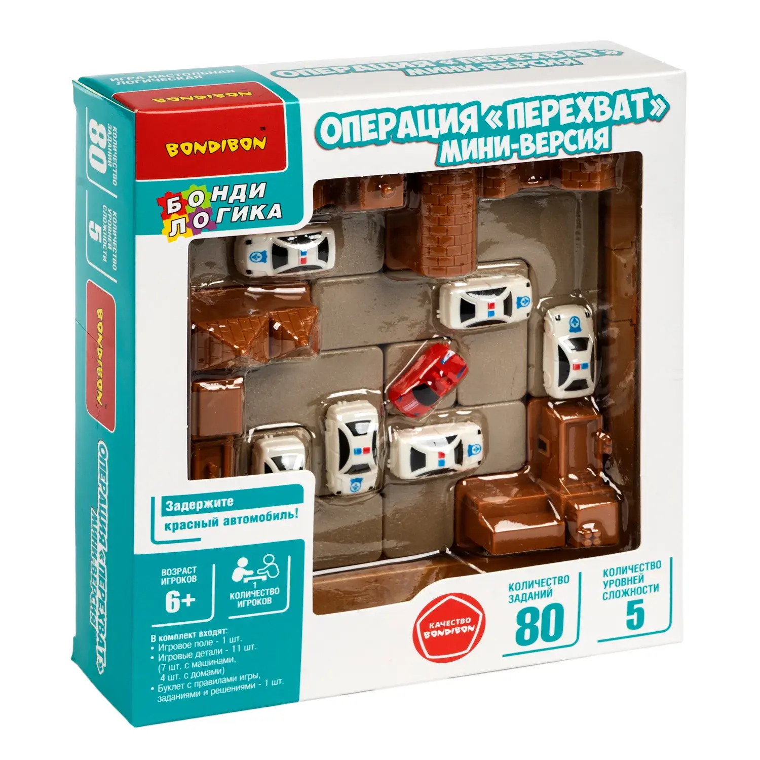 Настольная логическая игра головоломка ОПЕРАЦИЯ ПЕРЕХВАТ мини-версия серии БондиЛогика от Bondibon понравится юным полицейским! Используйте свой ум, чтобы задержать красный автомобиль. Выберите одно из 80 заданий. Расположите красную машину и дома на игровом поле указанным образом - эти детали переставлять больше нельзя. Расставьте 6 деталей с полицейскими машинами на игровом поле так, чтобы заблокировать красное авто. Если все возможности выезда перекрыты – Вы нашли верное решение! Постепенно переходите на более сложные уровни.