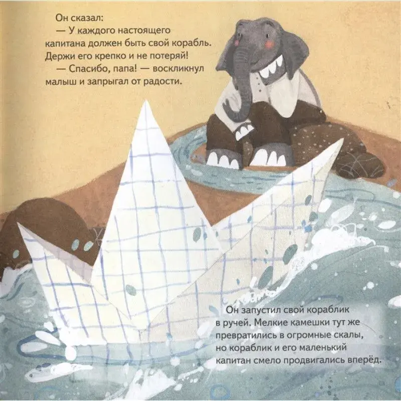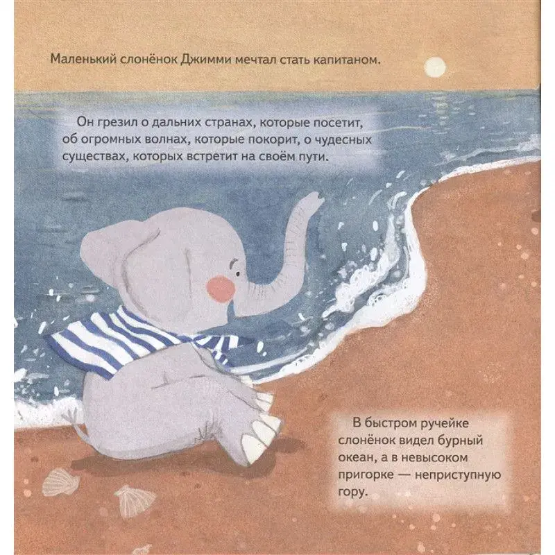 Эта история вдохновит многих малышей, особенно тревожных и пока не уверенных в себе. Из книги они узнают, как важны поддержка близких и вера в свои силы на пути к мечте. Сложно быть таким маленьким слонёнком и иметь такую большую мечту! Но Джимми очень хотелось стать настоящим капитаном. Каждый день он тренировался и запускал в ручейке бумажный кораблик. Однажды случилось несчастье и Джимми оказался один на плоту посреди бушующего океана. Кто же придёт ему на помощь? Сможет ли слонёнок вновь поверить в себя? Пусть все мечты сбываются!