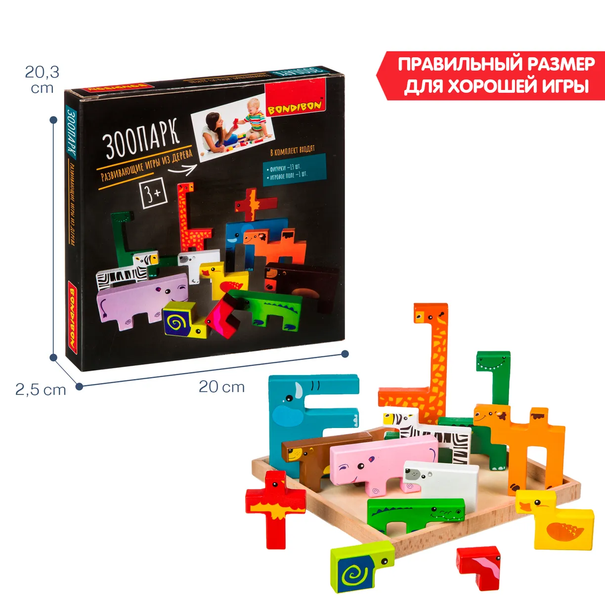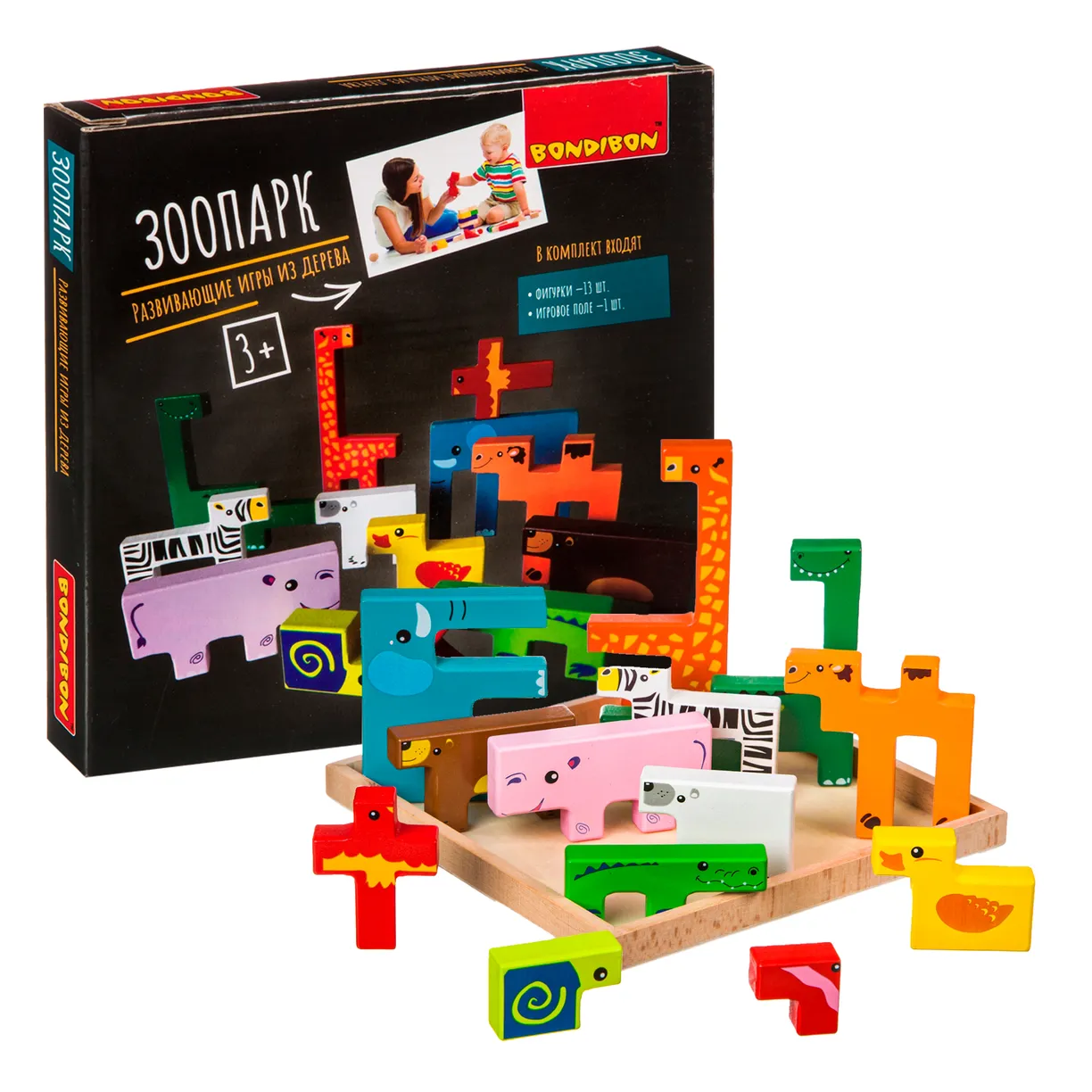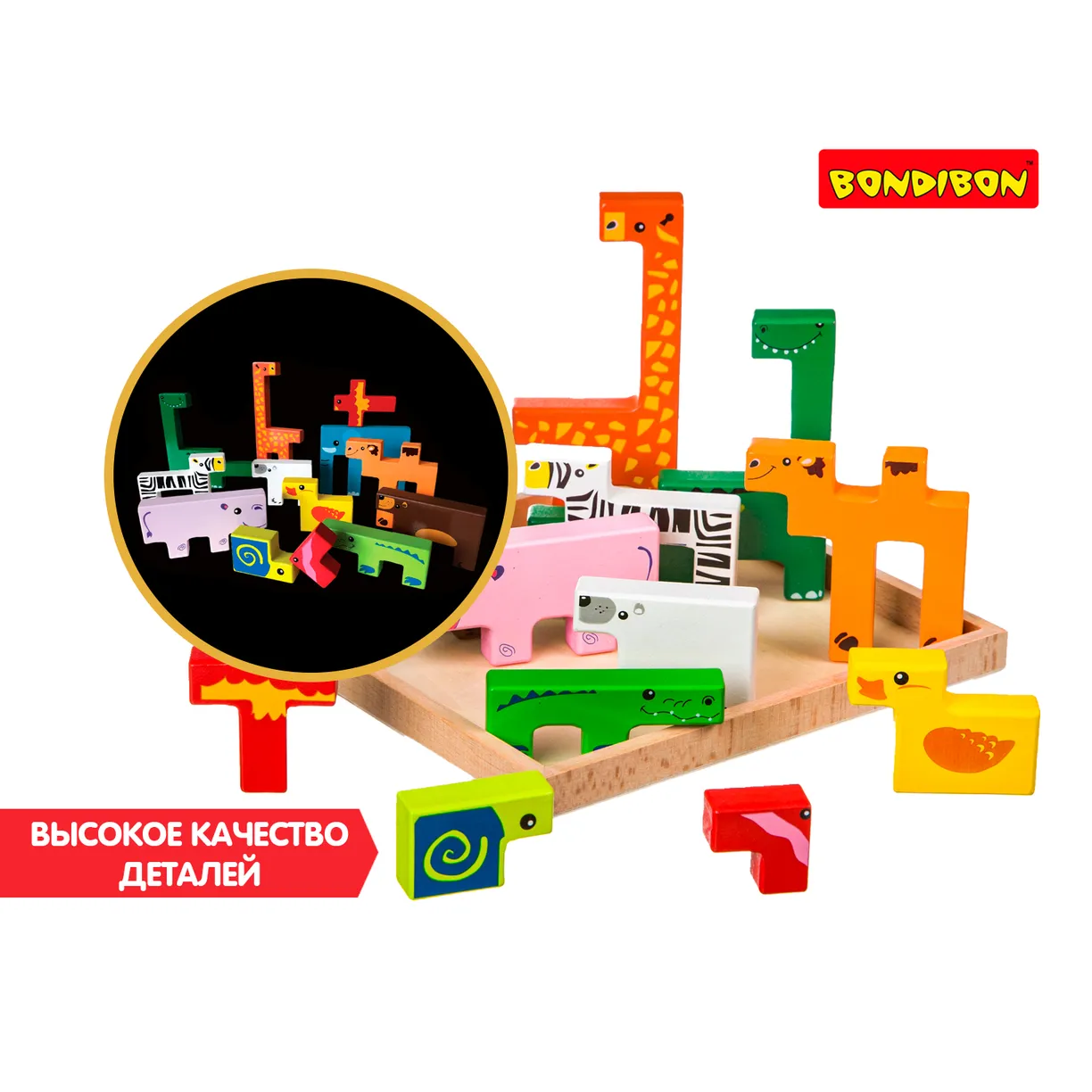 Придумайте с фигурками животных игры в ферму или зоопарк. Постройте с ними пирамиду , соберите пазл на основе животных или сыграйте с ними в тетрис! Игра от Бондибон разовьет мелкую моторику и логику.