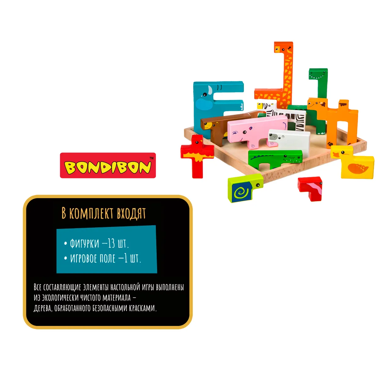 Все составляющие элементы настольной игры выполнены из экологически чистого материала – дерева, обработанного безопасными красками.