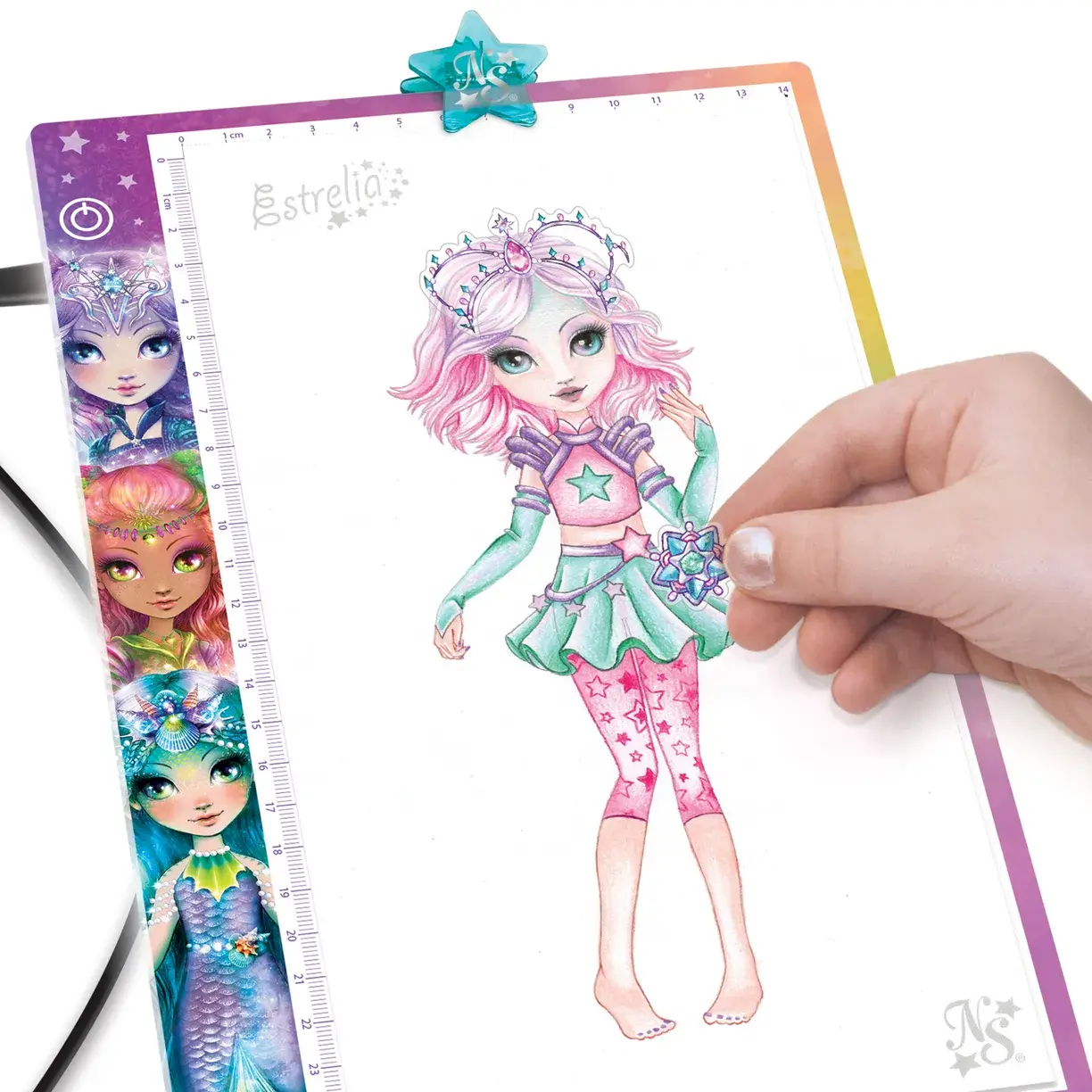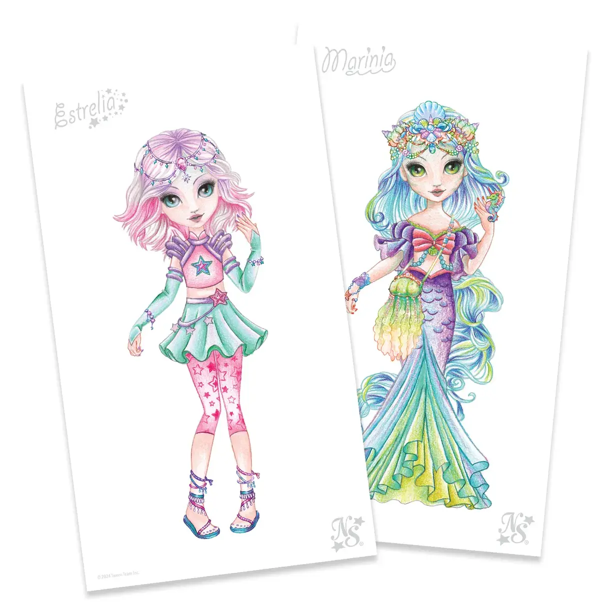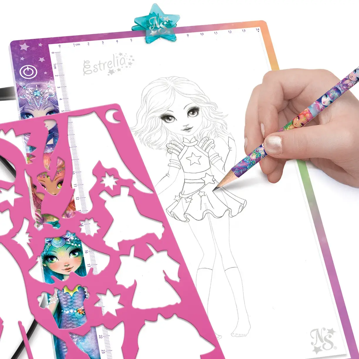 Используйте трафареты и декоративные наклейки, чтобы создавать восхитительные наряды для очаровательных Звёздочек из Мерцающей туманности.