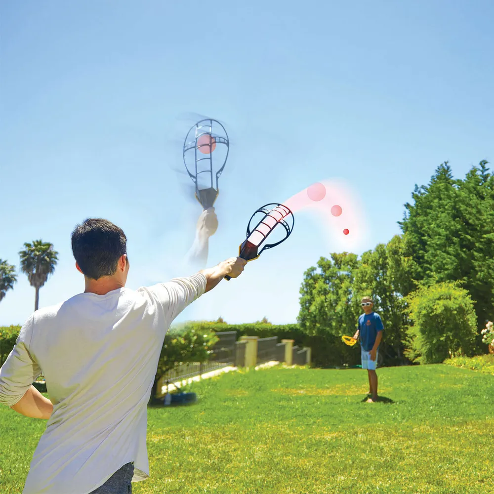 Компания Wham-O более 70 лет является синонимом веселья, игр и спорта. В ассортименте бренда, помимо метательных дисков Frisbee, принёсших мировую известность компании, множество игровых наборов и приспособлений для активного времяпрепровождения как дома, так и на улице. Игра Трекбол — классическая американская дворовая игра, которую любят и взрослые и дети. Трекбол по механике точно копирует теннис или бадминтон, но ракетки совсем не привычной для этих игр формы. С помощью таких ракеток, игроки бросают мяч намного дальше и сильнее, придают мячам вращение и выполняют крутые трюки. Ракетка имеет широкую форму, чтобы легче было ловить мяч на расстоянии. Активные игры способствуют развитию физической активности и одновременно обеспечивает отличное времяпрепровождение. Отличное семейное развлечение — берите набор с собой куда угодно! Играйте где угодно — во дворе, на пикниках в парке, на пляже, в кемпинге, на семейных встречах. Благодаря ярким цветам и огромному размеру эти игрушки легко найти в высокой траве или на дне ящика для игрушек